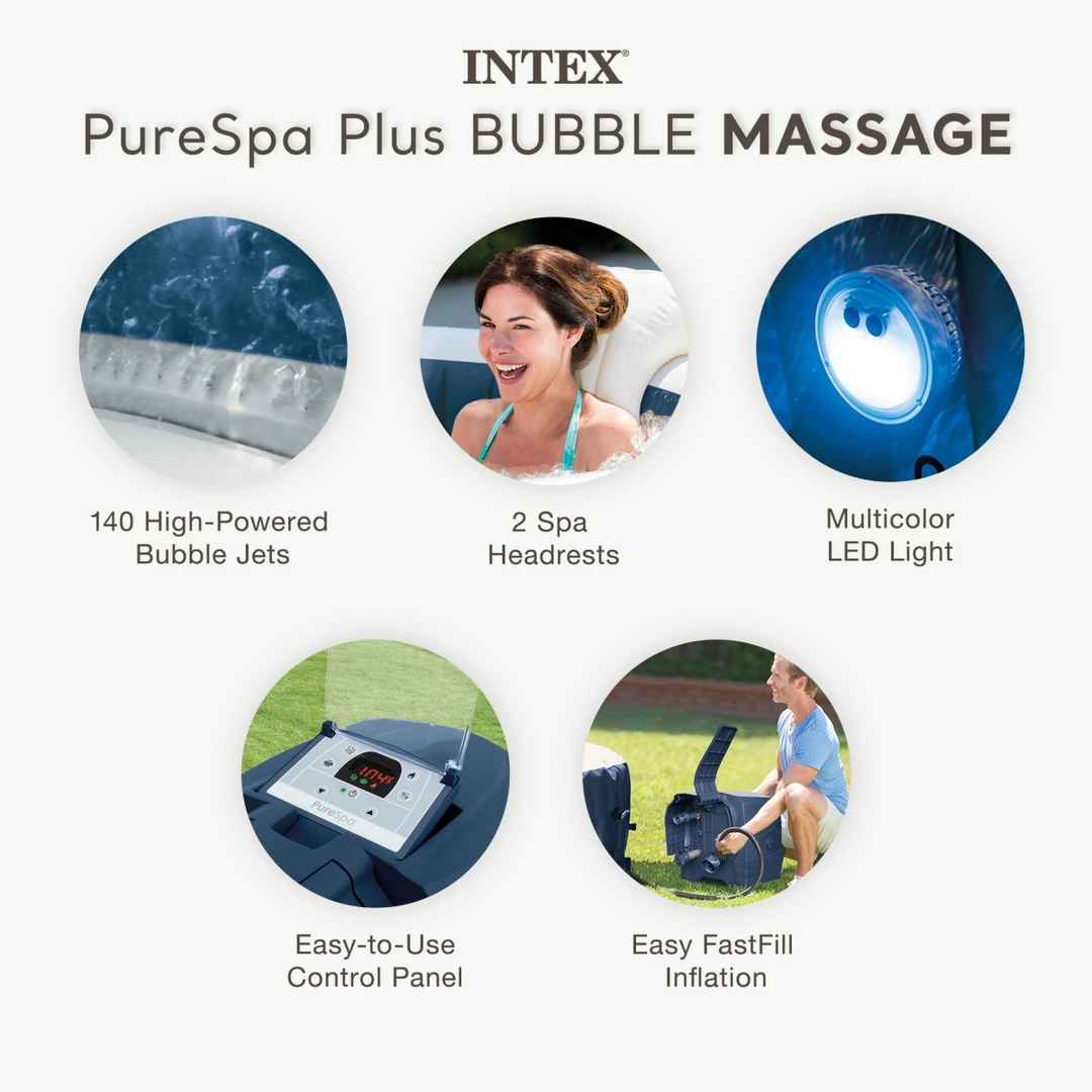 Intex 28429EP PureSpa Plus Portable 77" x 28" Inflatable Hot Tub Bubble Jet Spa - Blue
