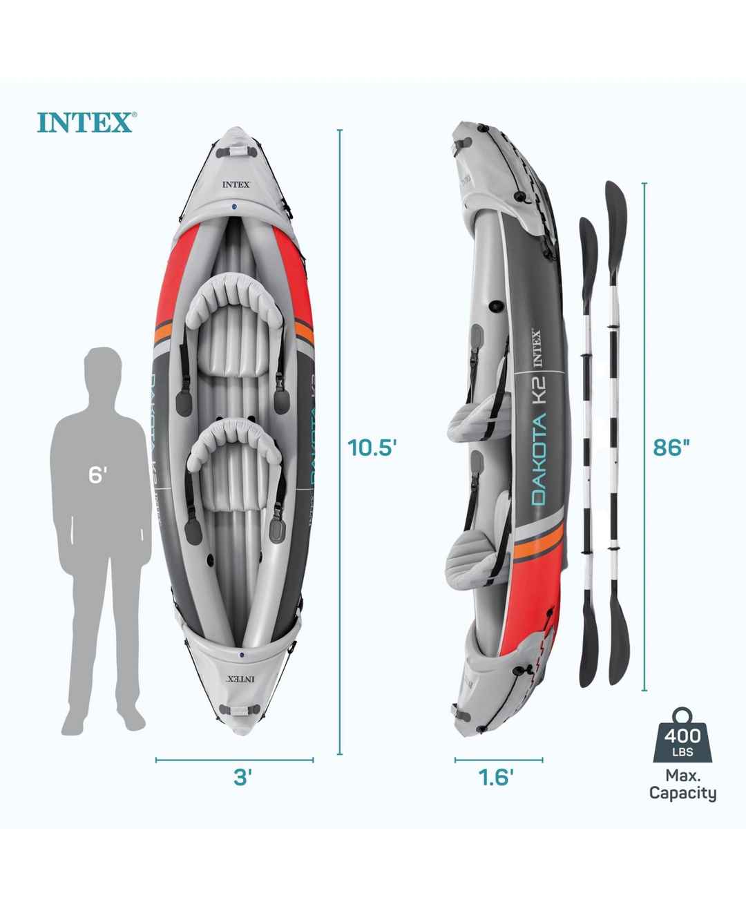 Enjoy the outdoors with your adventuring partner all season by hitting the water in the Dakota K2 Inflatable Kayak from Intex. With included aluminum oars, an air pump, and carrying bags, you'll have everything you need to take to the lakes, rivers, and even the coasts for a perfect outdoor day.This...more