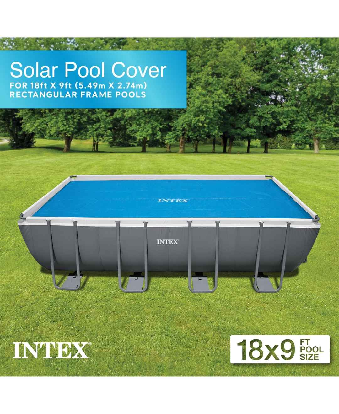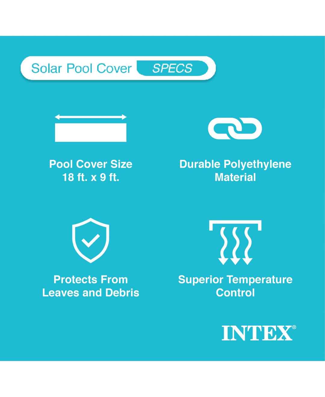 Intex Solar Pool Cover for 18' x 9' Rectangular Frame Swimming Pools, Cover Only - Blue