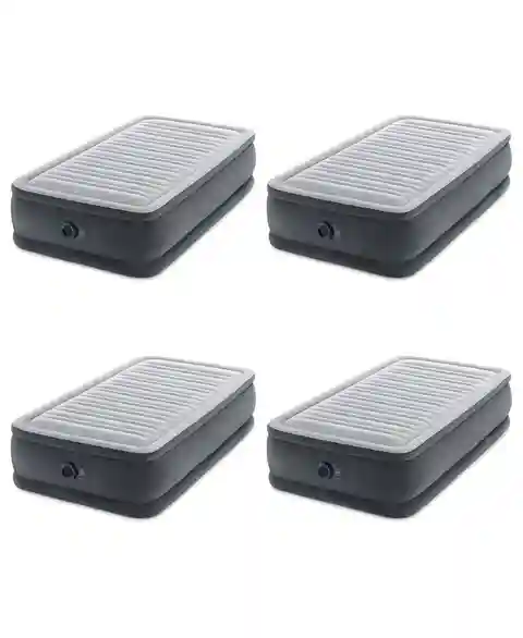 Intex Dura Beam Comfort Plus Airbed Mattress w/ Built-In Pump, Twin Size, 4 Pack - Gray