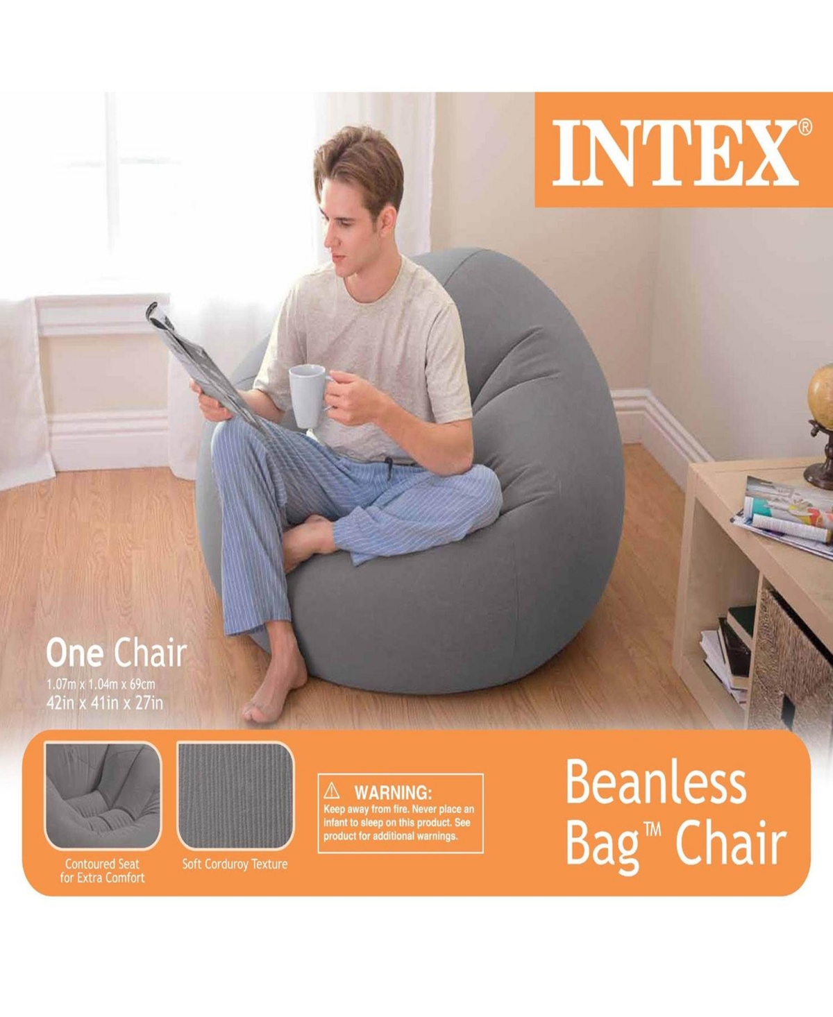 Intex Inflatable Contoured Corduroy Beanless Bag Lounge Chair, Grey | 68579EP - Gray