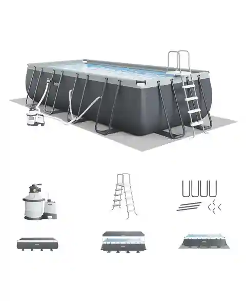Keep cool on those hot summer days and leave the garden hose for your lawn and garden. Make the most out of your summers and make a splash with the Intex 24-foot x 12-foot x 52-inch Ultra Frame Rectangle Pool Set.The rectangular swimming pool design is perfect for narrow backyards, lap swimmers, and...more