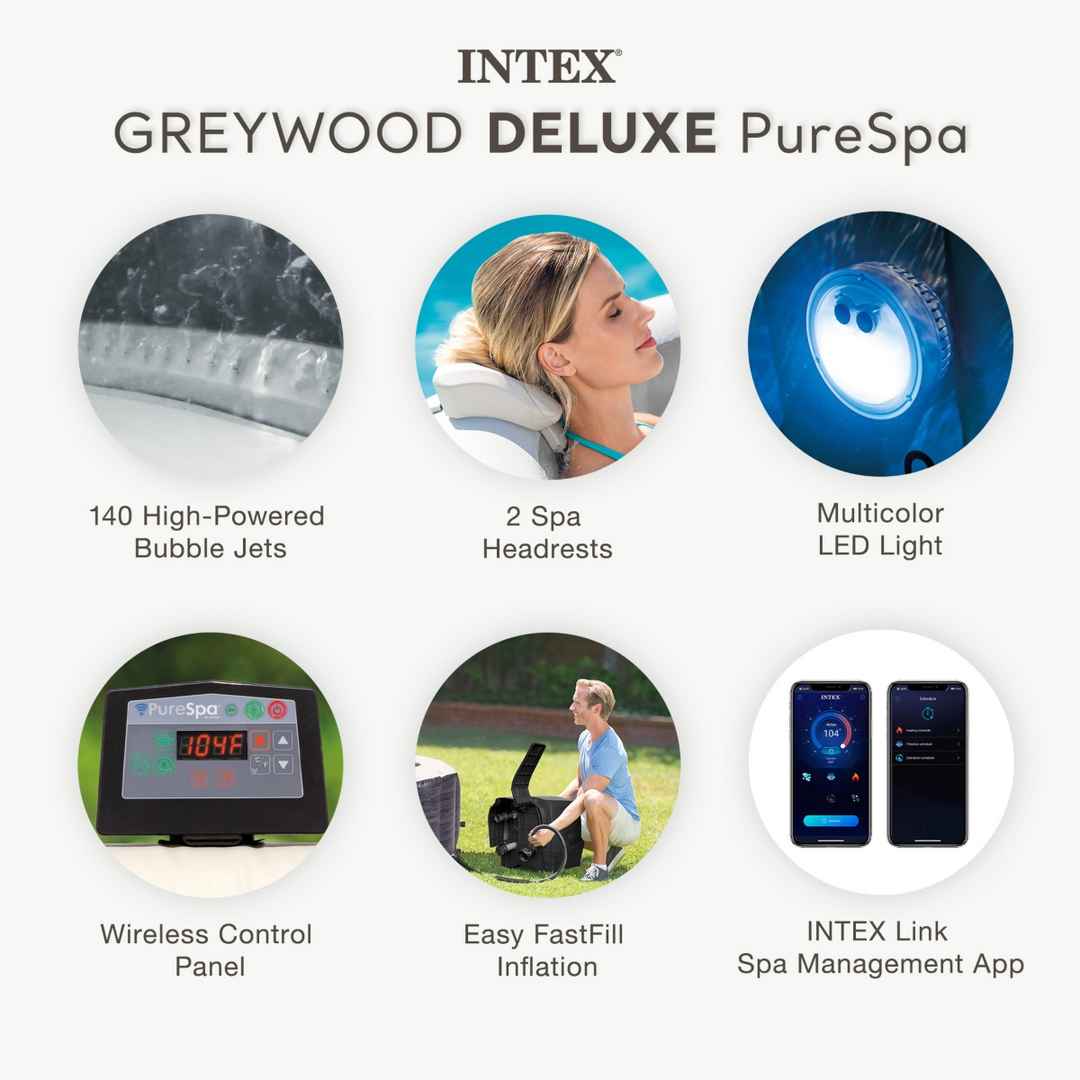 Intex 28439EP PureSpa Plus Greywood Inflatable Hot Tub Bubble Jet Spa, 77 x 28" - Gray
