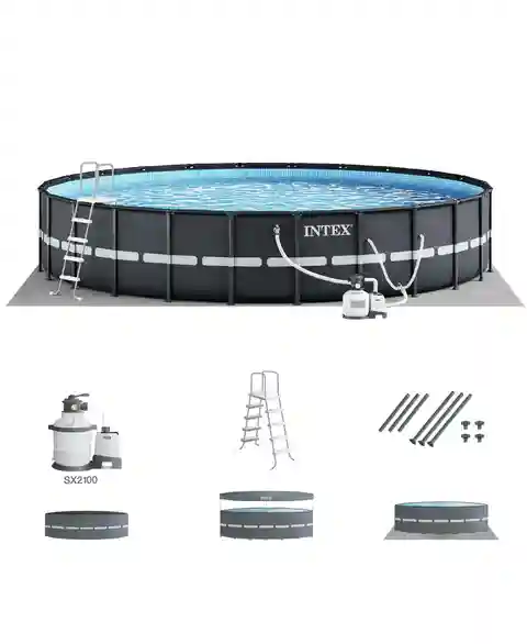 Intex 18Ft x 52In Ultra Xtr Frame Round Above Ground Swimming Pool Set with Pump - Gray