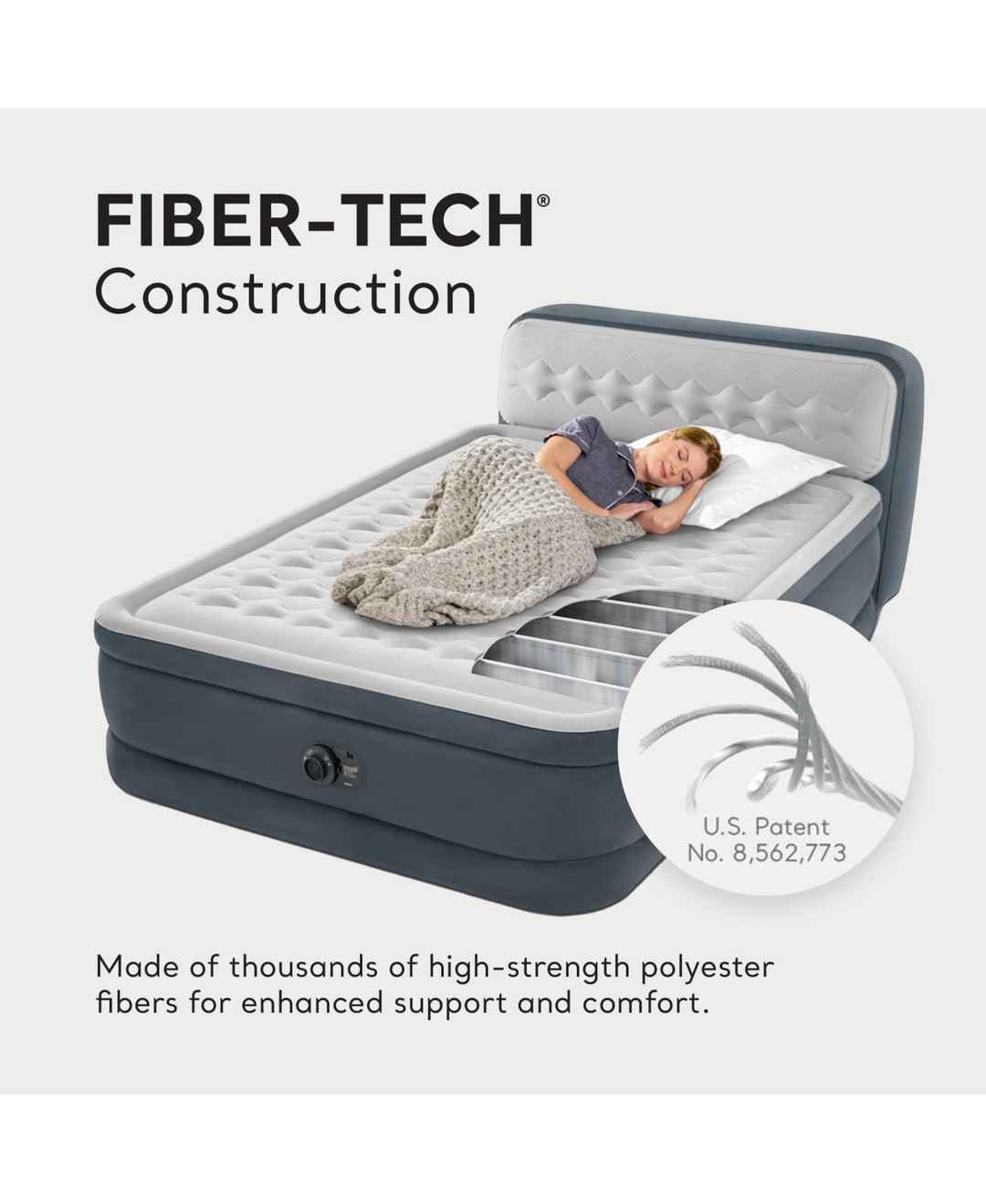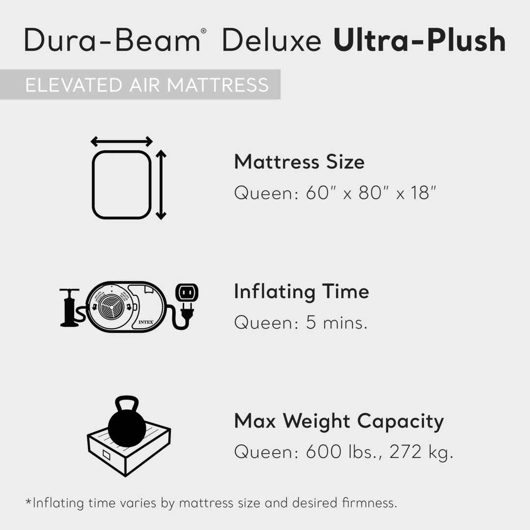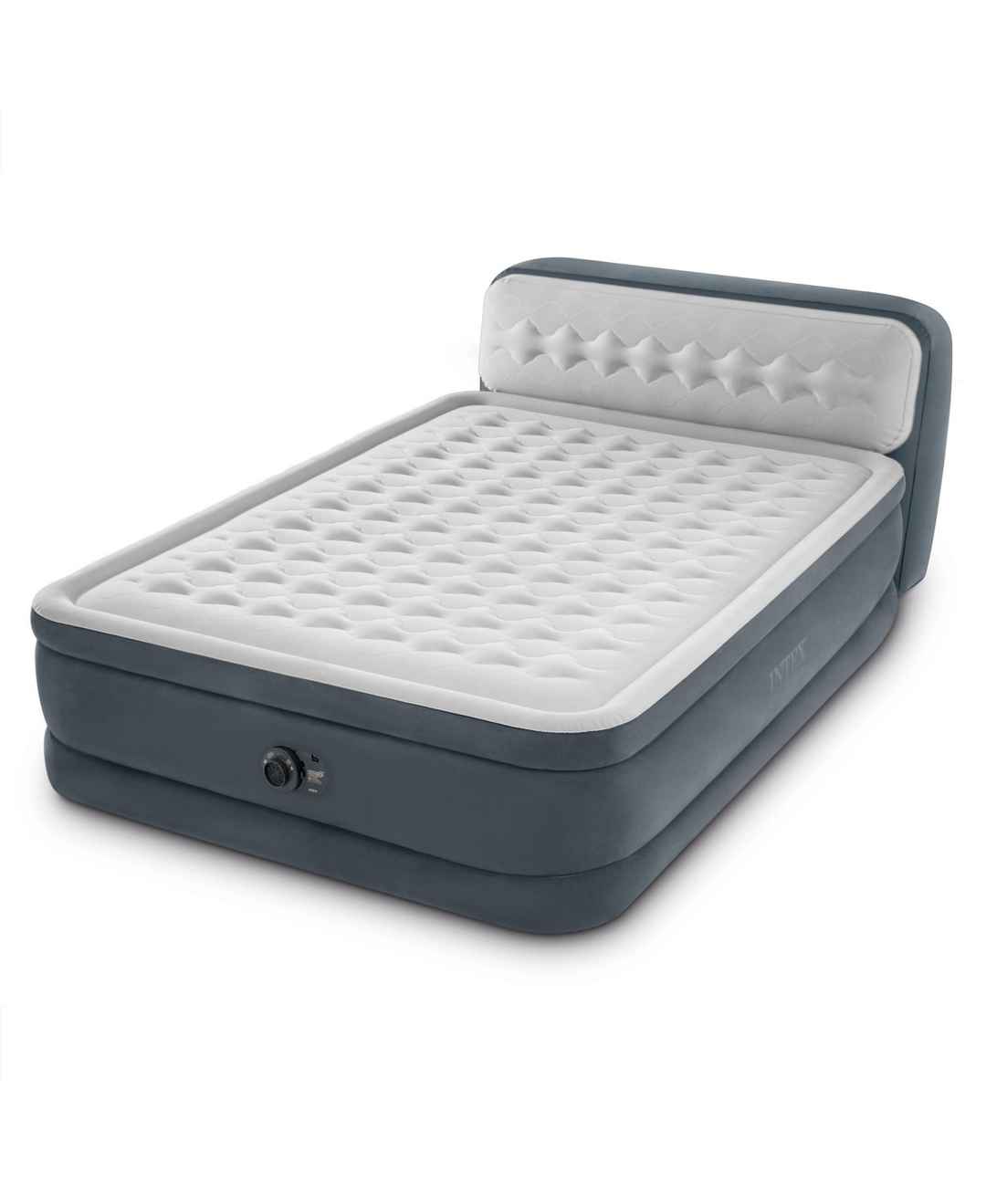 Enjoy a good night's sleep wherever you are with the Intex Dura-Beam Fiber Tech Air Mattress Bed with Ultra Plush Headboard. This airbed is especially useful when it comes to traveling or camping.This comfy portable bed features a built-in electronic pump that easily inflates and deflates your bed f...more
