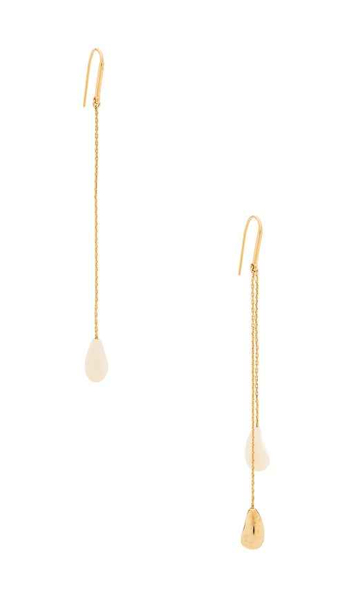 Isabel Marant Asymmetric Earrings in Metallic Gold. Isabel Marant Asymmetric Earrings in Metallic Gold. Gold-plated metal with white bead. Fish hook closure. Measures approx 3.5 dangling. IMAR-WL121. BL0241FA-C1B21B. The pioneer spirit - During the brand's early days, a unique silhouette is born: th...more