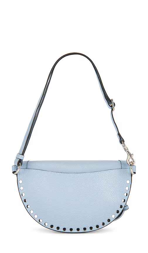 Isabel Marant Skano Pouch in Baby Blue. Isabel Marant Skano Pouch in Baby Blue. Dyed calfskin exterior with cotton lining. detailed with logo debossing and signature studs. Top zip-around closure. One main compartment with single interior flat pocket. Removable, adjustable crossbody strap. Measures ...more