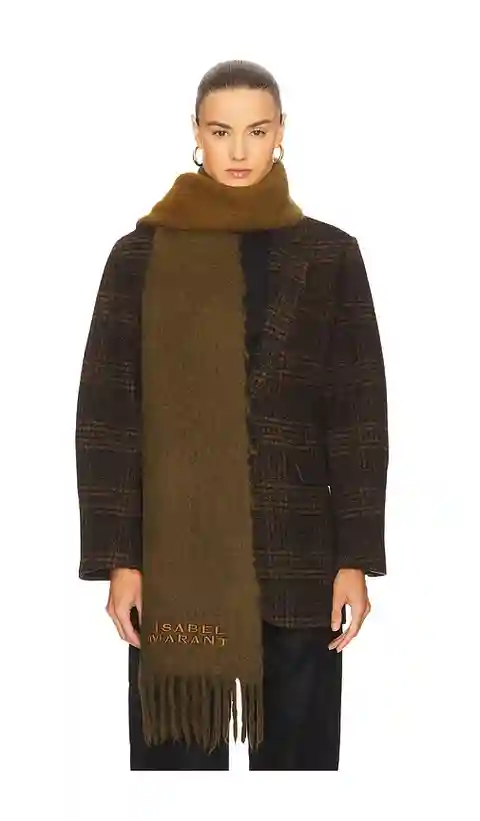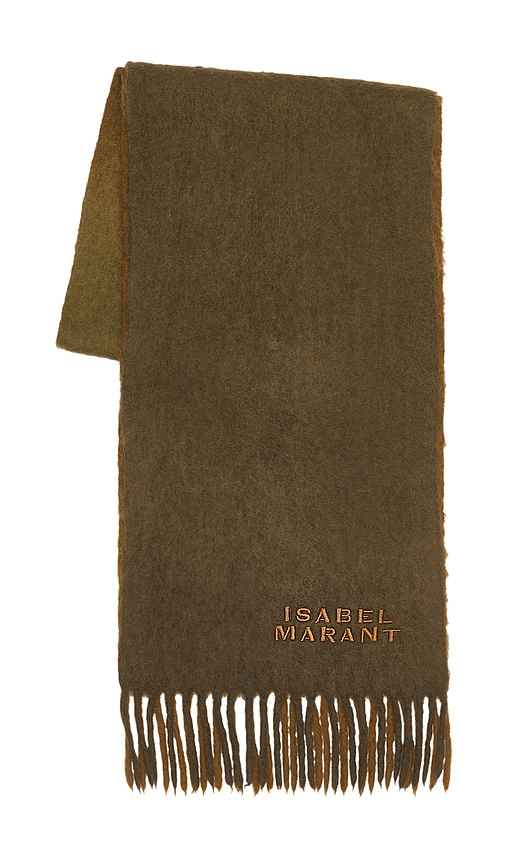 Isabel Marant Firna Scarf in Tan. Isabel Marant Firna Scarf in Tan. Self: 80% alpaca 20% polyamide Contrast Fabric: 100% cotton. Dry clean only. Fringed ends. Embroidered logo detailing. Midweight knit fabric. Measures approx 13.5 W x 80 L. IMAR-WA242. EC115XFA-C3C03A. The pioneer spirit - During th...more