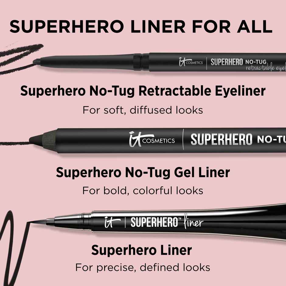 If you prefer an automatic eyeliner to one you need to sharpen, open your eyes to Superhero No-Tug Retractable Eyeliner! Featuring our exclusive No-Tug Technology, this waterproof mechanical eyeliner delivers the super smooth glide and super saturated color youve come to know and lovenow with no sha...more