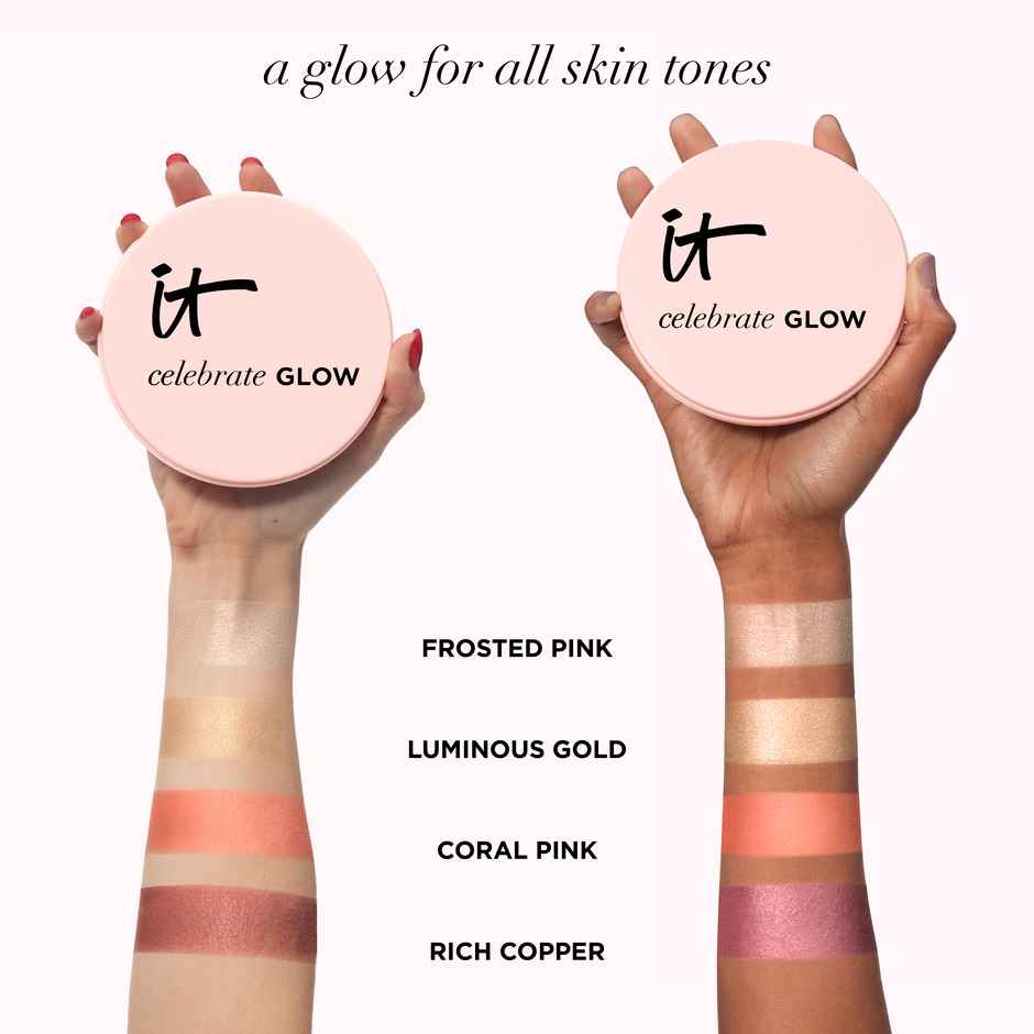 Your limited-edition face and eye makeup palette features 4 multitasking blush, highlight and eyeshadow shades made with your skin tone in mind. Layer over CC+ Cream to create the ultimate holiday glow for all shades.\t\t\t\t\t\t\t\t\t\t ITs Great For Highlight, Blush, Eyeshadow | IT Cosmetics Celeb...more