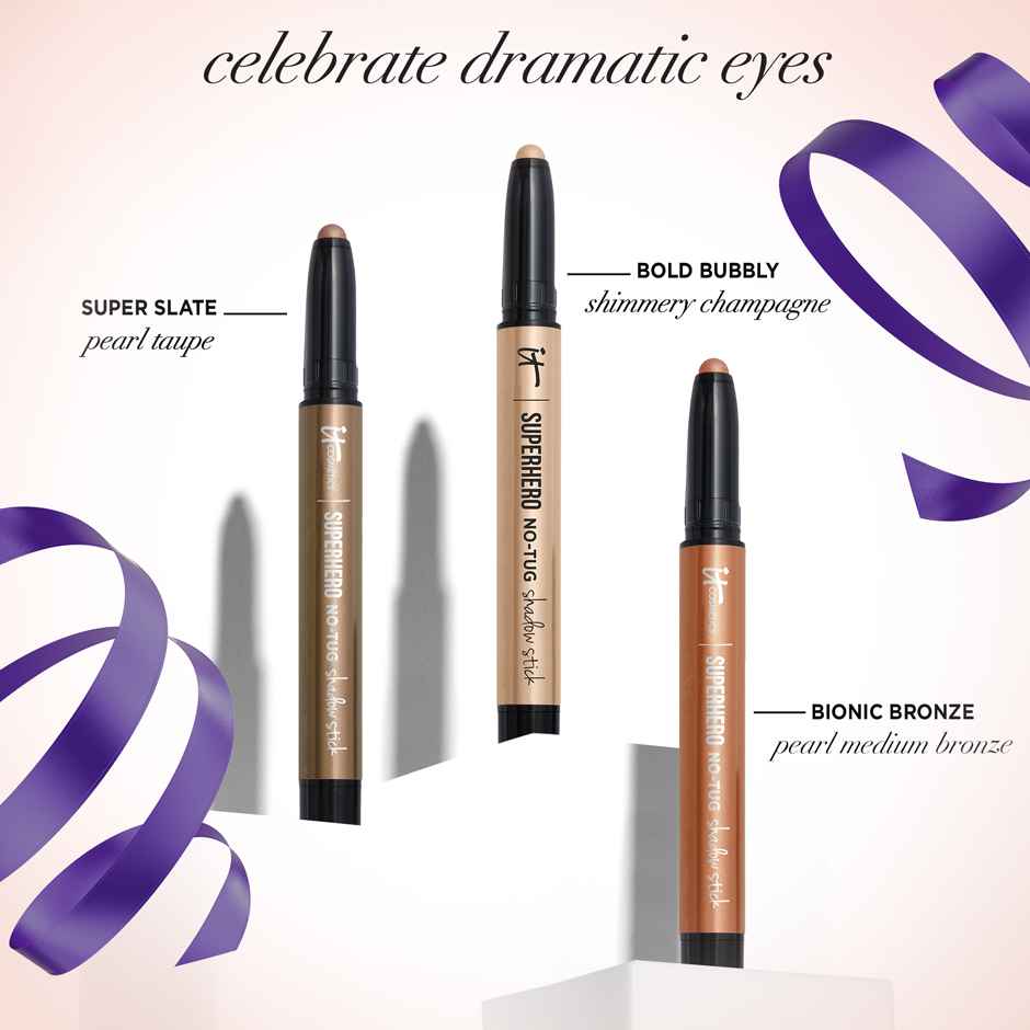 Your limited-edition eye makeup set includes three buildable and blendable cream eyeshadow sticks in best-selling shades with pearl finishes. ITs Great For Long-Wearing Color, Bold Eye Makeup Looks, Sensitive Eyes | IT Cosmetics Celebrate Sparkle & Shine Eyeshadow Stick Trio