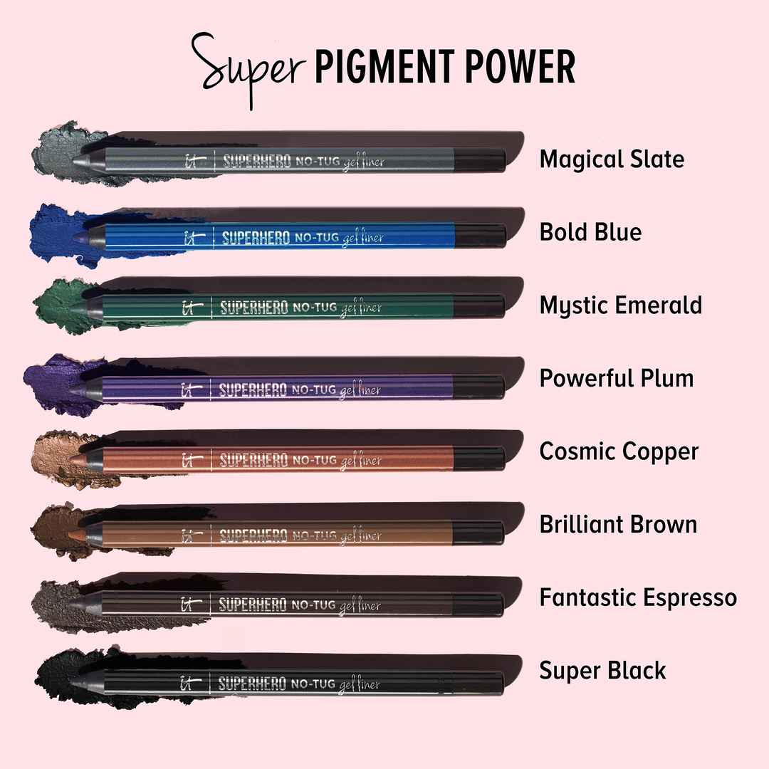 Superhero No-Tug Gel Eyeliner combines what you love most about Superhero Liner and your original No-Tug Anti-Aging Gel Eyelinermaking it easier than ever to achieve precise application without tugging on your delicate eyelids! Featuring technology exclusive to IT Cosmetics, this waterproof and shar...more