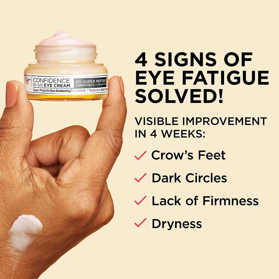 Discover IT The delicate skin around your eyes needs specialized care to fight the signs of aging. Confidence in an Eye Cream is the lightweight anti-aging eye cream you know and lovenow reformulated with 2% Super Peptide Concentrate to solve the 4 signs of eye fatigue! In just 4 weeks, youll see a ...more