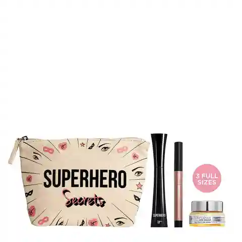 Need a gift for the makeup lover in your life? Look no further than this gift set featuring a trio of essential makeup to brighten eyes! It includes full sizes of hydrating Confidence in an Eye Cream, Superhero No-Tug Waterproof Eyeshadow Stick in Silk Armor, and Superhero Elastic Stretch Volumizing...more