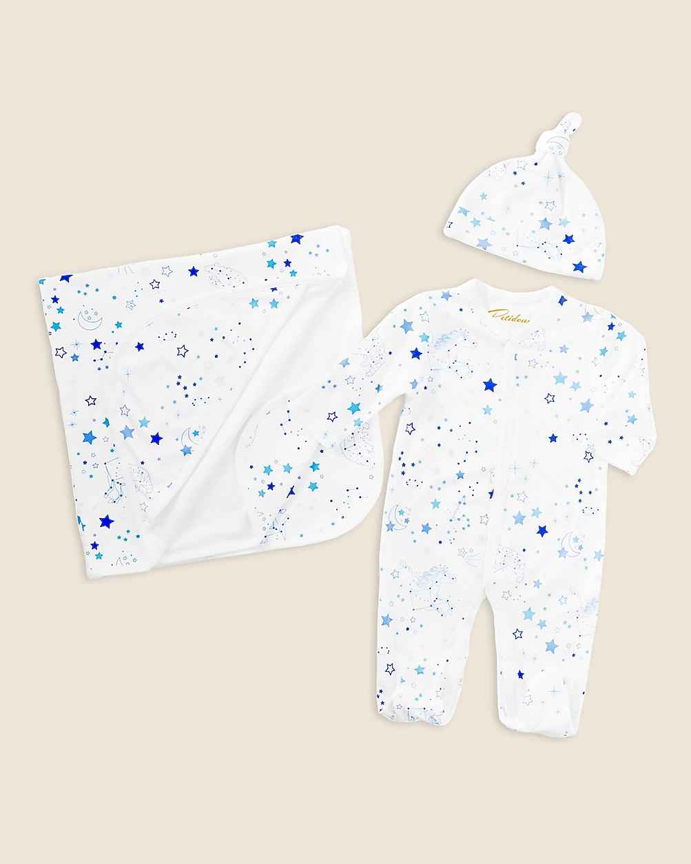 Petidoux babies' Pima cotton one-piece, matching hat and receiving blanket set