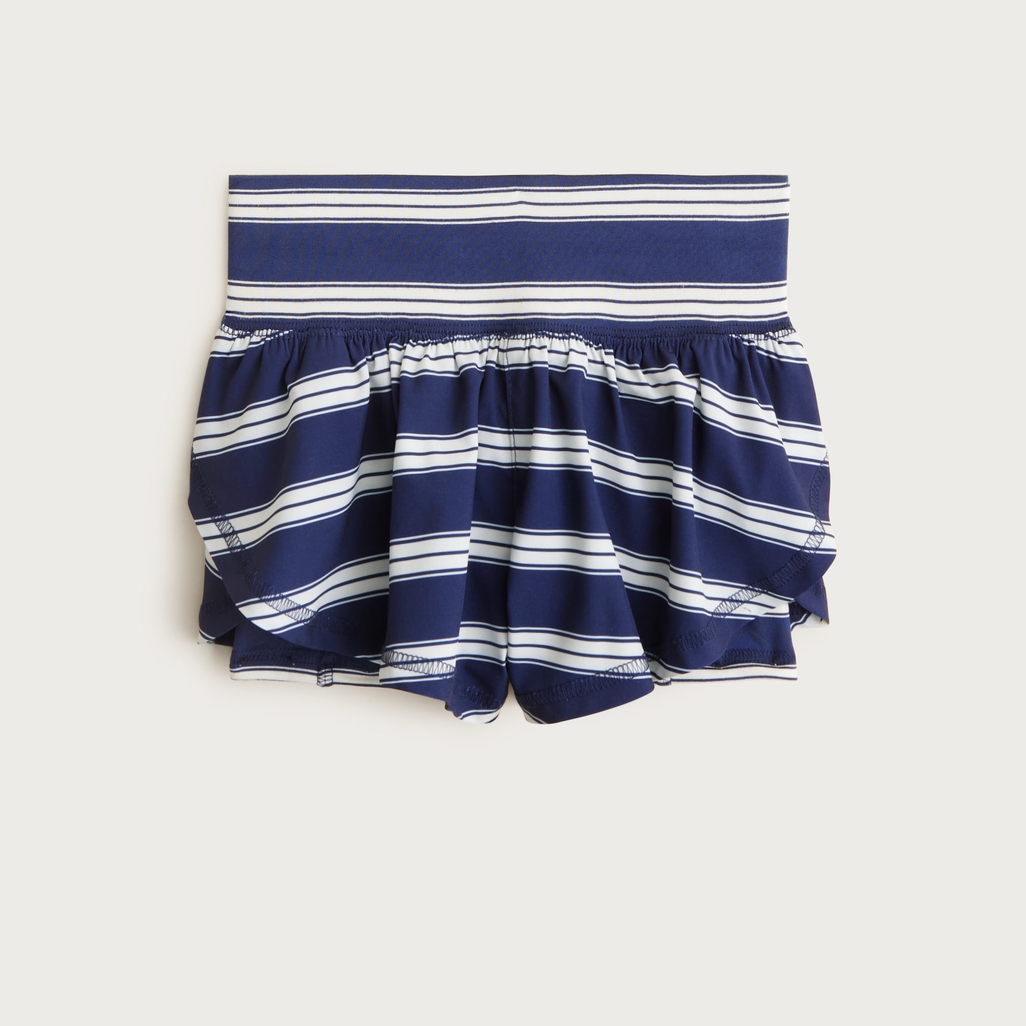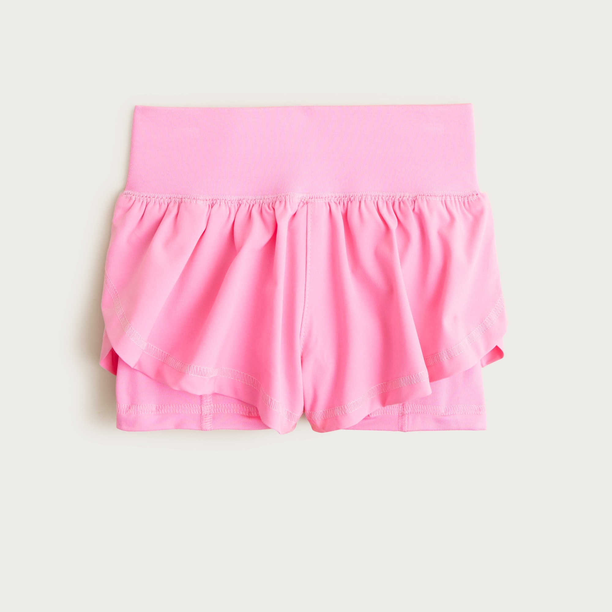 Made from a high-tech performance fabric with tons of stretch, these layered shorts are perfect for the playground, the sports field and everywhere in between. Designed to keep up with her every move (while staying comfy!) this pair features a super swingy high leg with soft, jersey bike shorts unde...more