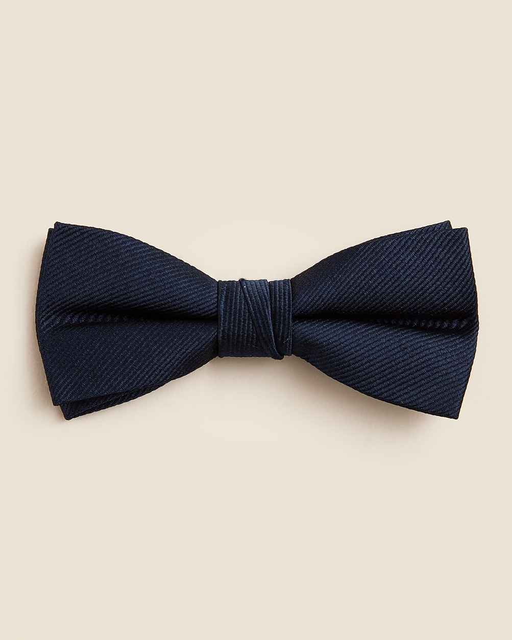 This handsome bow tie has an easy-on, easy-off hook closure that makes dressing up that much easier (something you'll both appreciate). Bonus detail: It's pre-tied, so you can get him downstairs and out the door fast.