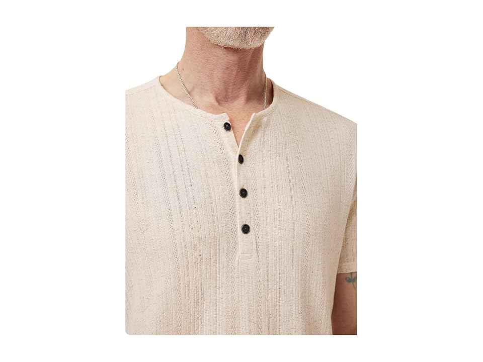 John Varvatos Ciel Henley K6937F25 Men's T Shirt Chalk : SM, Cotton/Linen/Viscose
