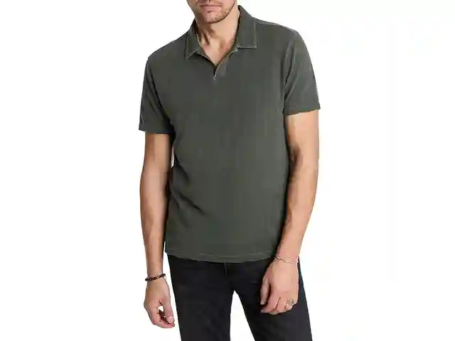 The primary materials that compose this product contain a minimum of 20 percent organic content. ; Designed with vertical texture patterns and overdyed process, the John Varvatos Zion Polo K6171F24 offers a breathable feel in a regular fit silhouette. It features a collared V-neckline, short sleeves...more