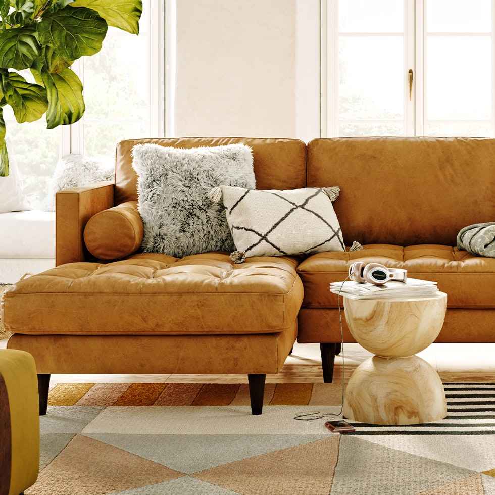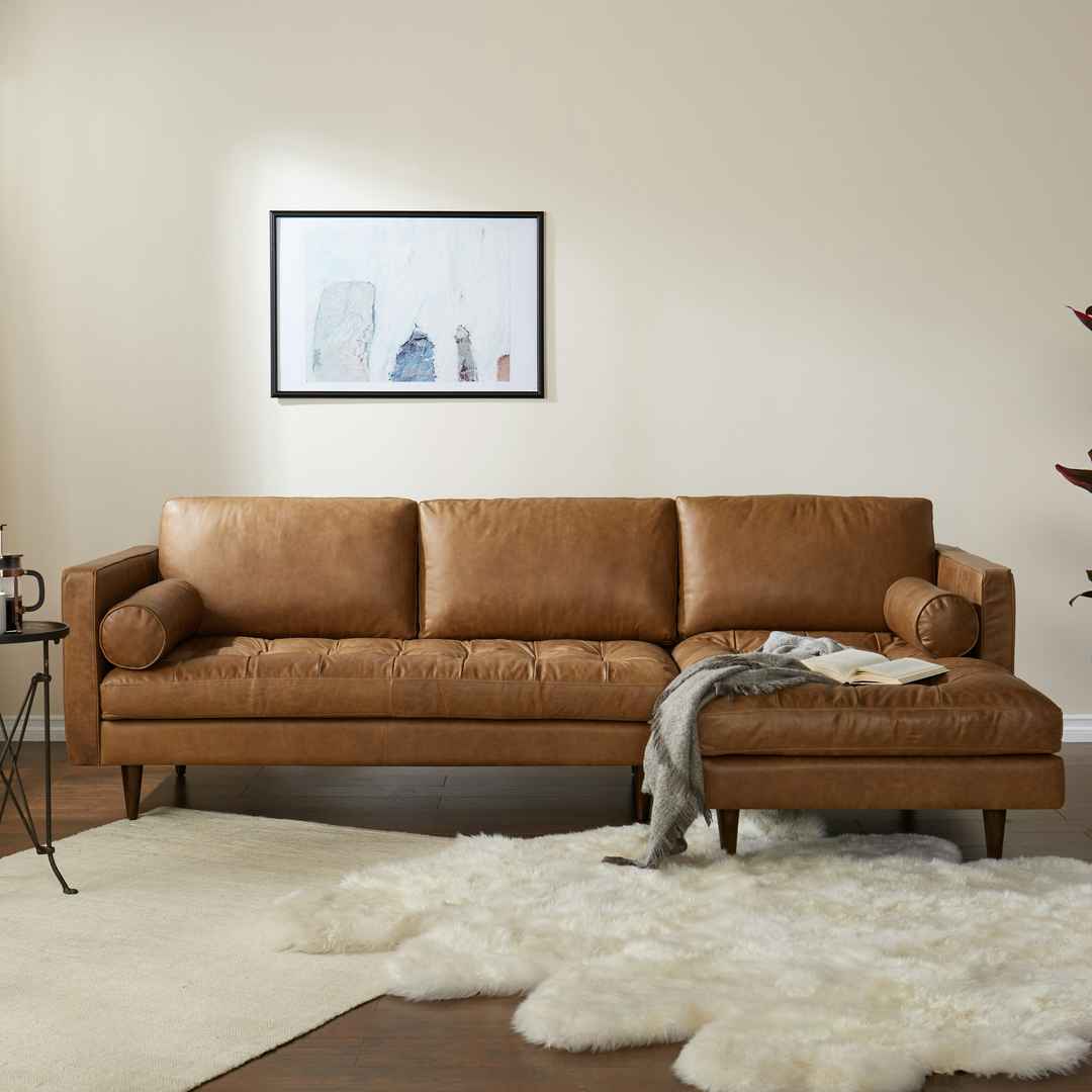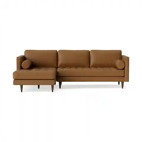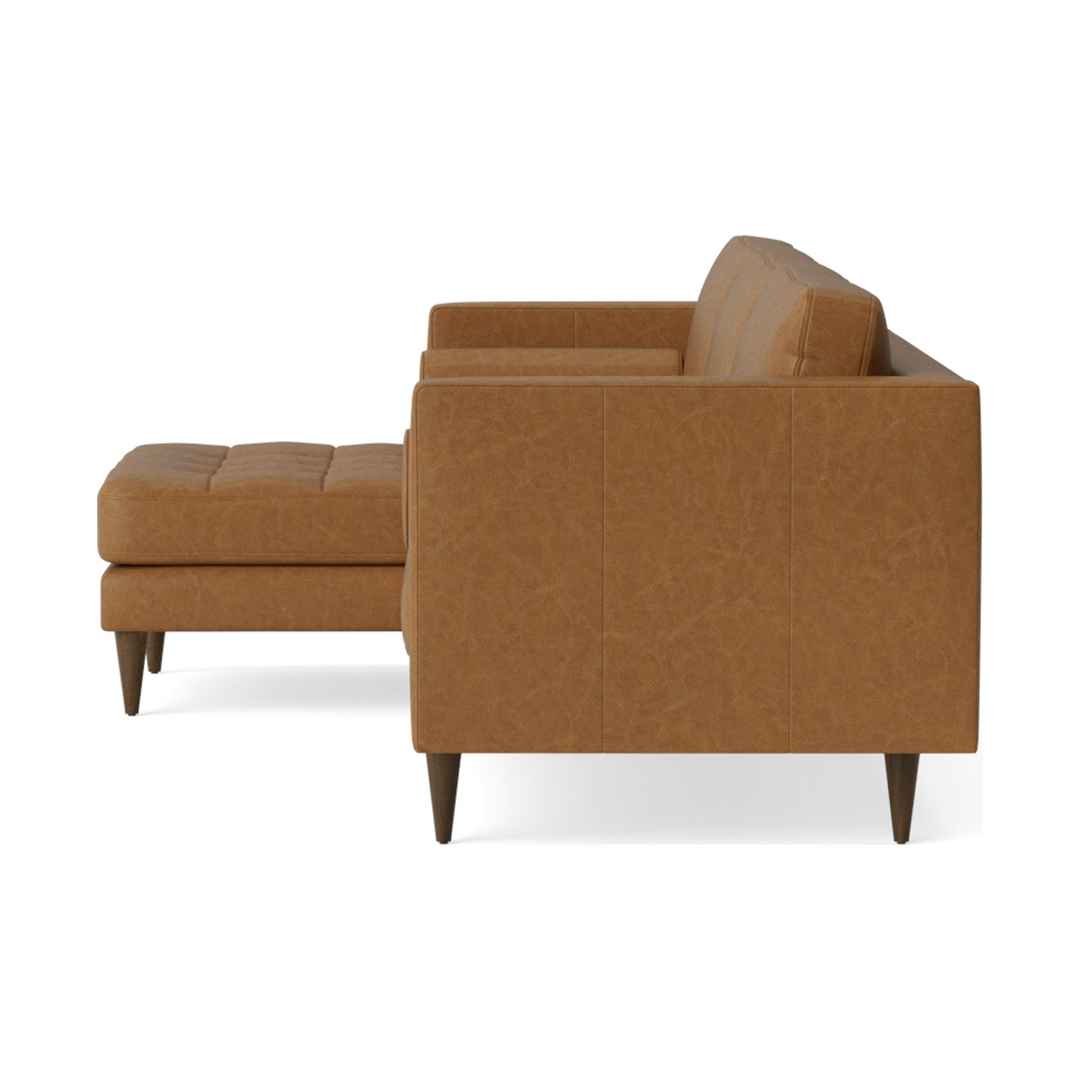Blending supportive cushioning with Mid-Century style, the Briar Leather Sectional invites you to kick back and relax in chic sophistication. Briar Leather Sectional Santiago Ale Left Brown Modern