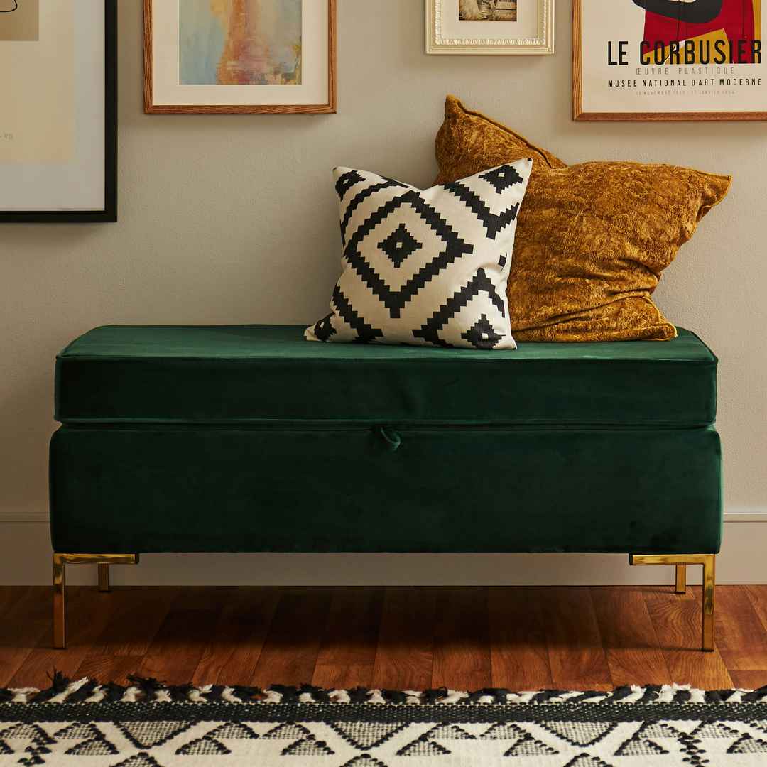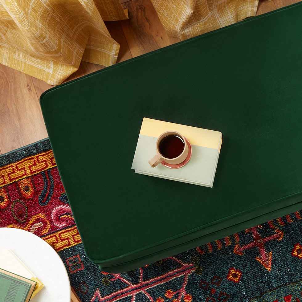 Tailored perfection meets fashionably functional in one well-designed piece that looks great and comes in handy in any setting. Dee Bench with Storage Leuven Olive Green Modern