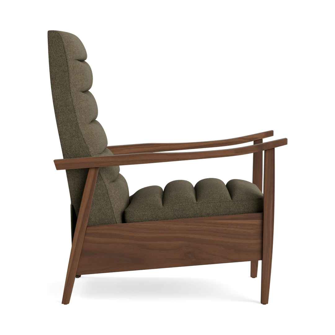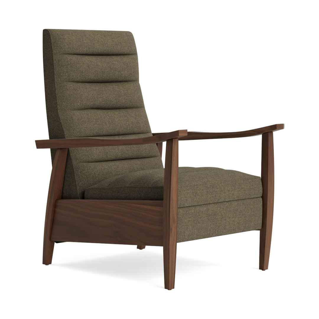 Deep grooved cushioning provide ample amounts of both comfort and style while the hand-sculpted wood frame has a retro feel thats just right. Langham Recliner Leuven Olive Walnut Green Mid-Century Modern