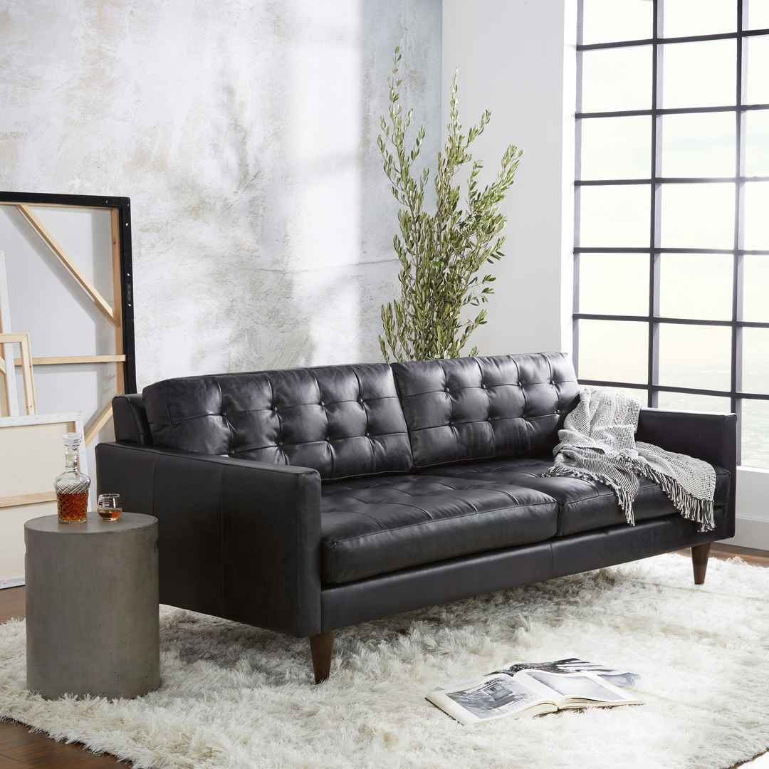 Kick off your celebrations or settle in for a night of streaming on the Eliot Leather Sofaa classic focal point for any living space. Eliot Leather Sofa Santiago Ale Brown Mid-Century Modern