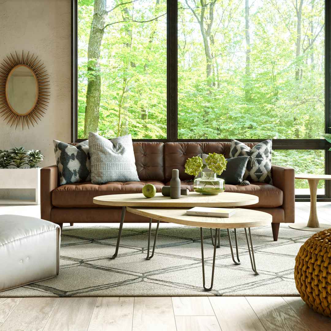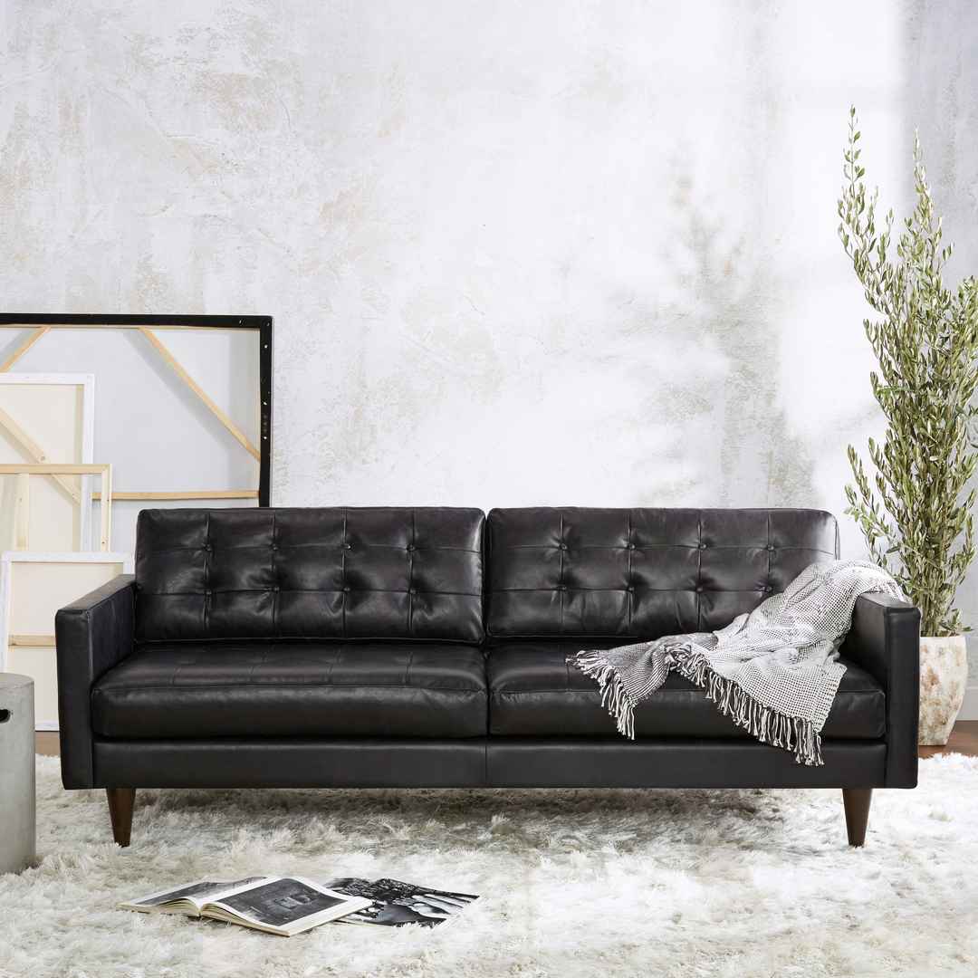 Eliot Leather Sofa Santiago Ale Brown Mid-Century Modern
