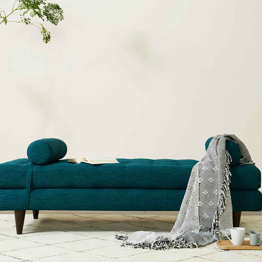Both an accommodating seat for cocktail parties and cozy bed for overnight guests, the Eliot Daybed channels Mid-Century cool through a versatile design. Eliot Daybed Leuven Olive Green Mid-Century Modern