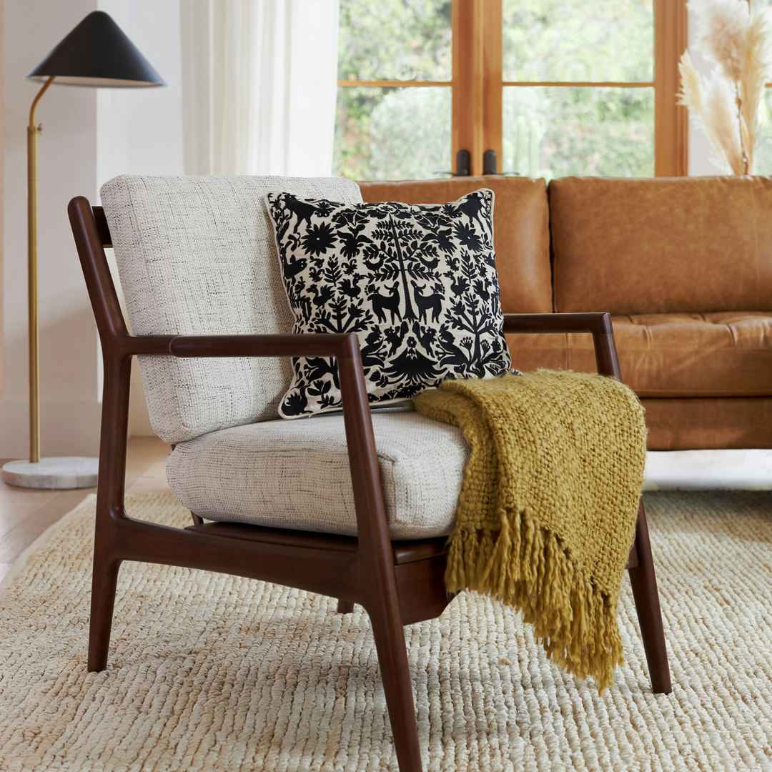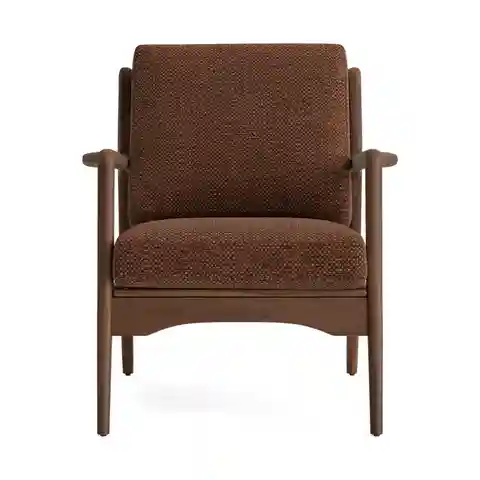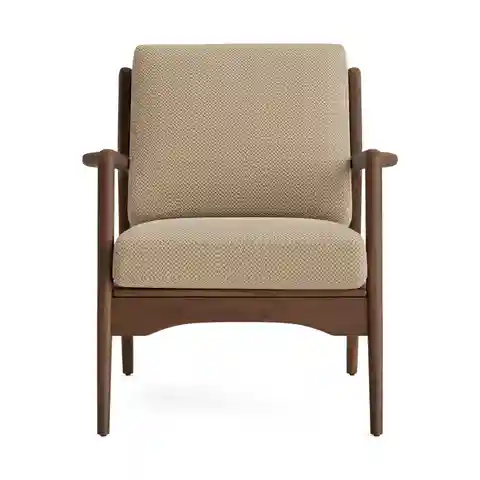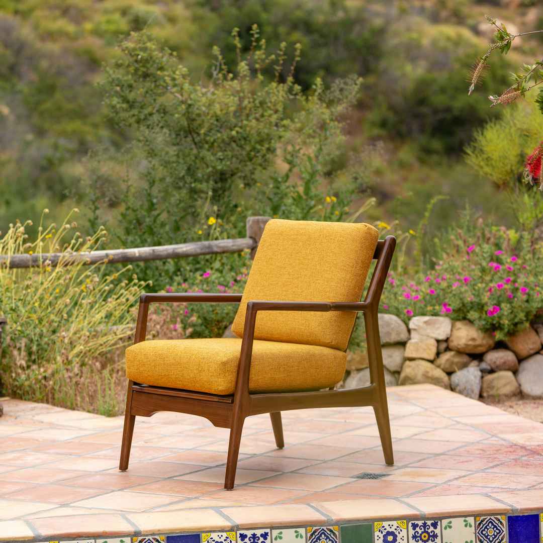 A classic rake-back wooden armchair with artfully carved angles that will offer unparalleled support and stir nostalgia. Collins Chair Leuven Olive Walnut Green Mid-Century Modern