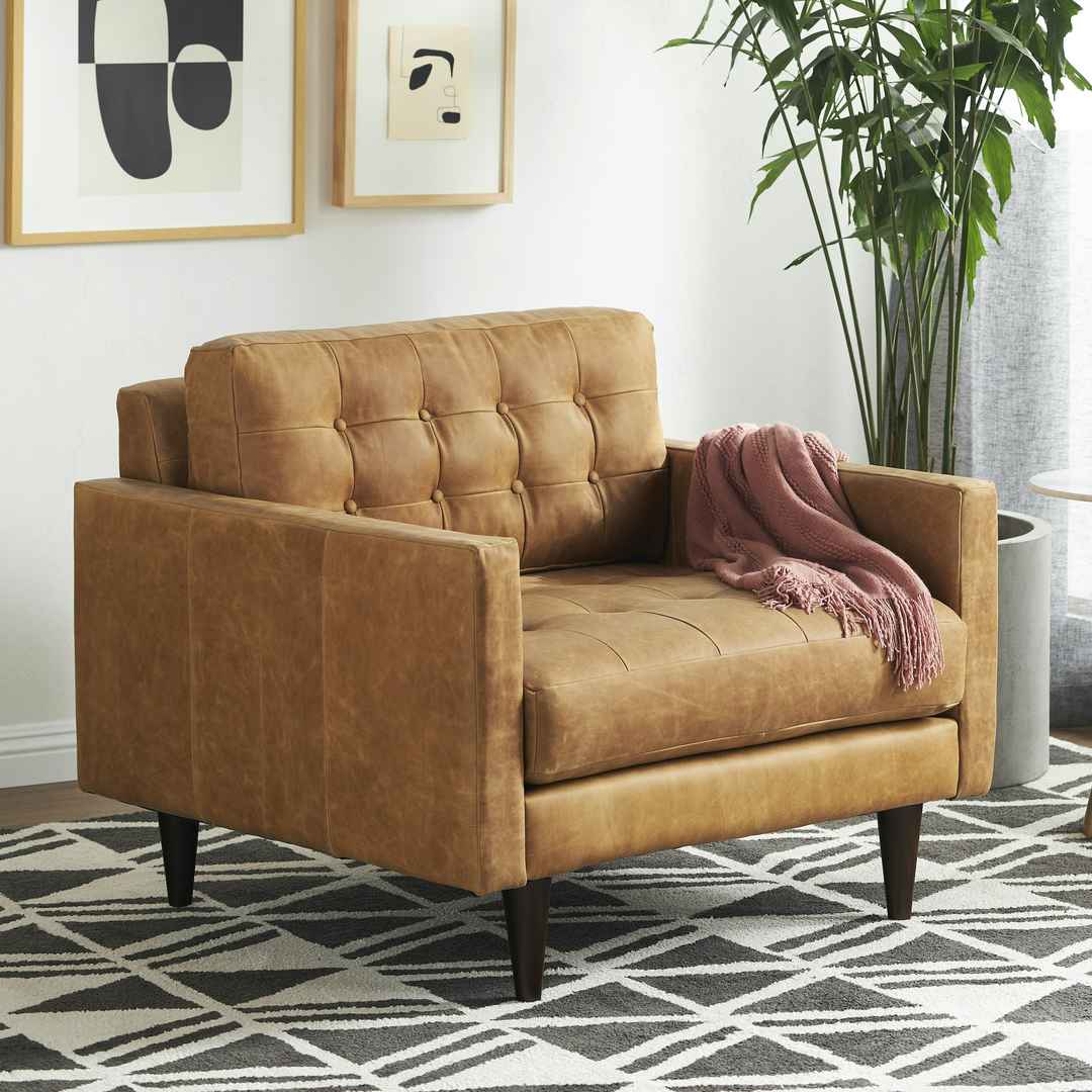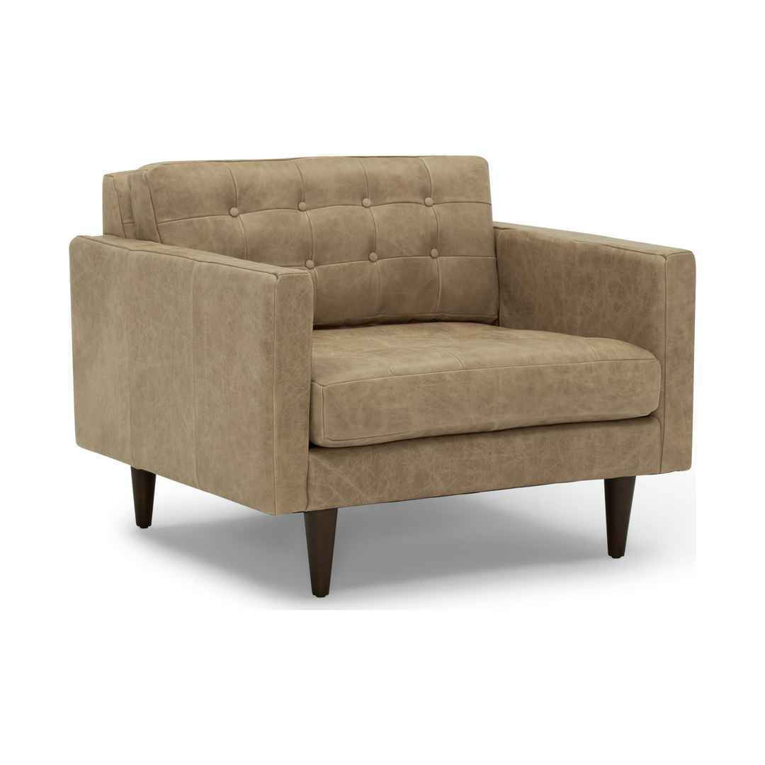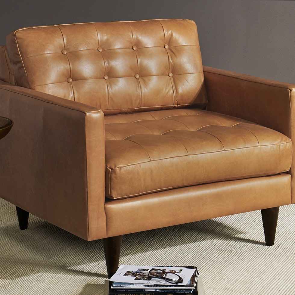 Adding a vintage flair to any lounge or office, the Eliot Leather Chair invites you to kick back and relax with a good read for some much needed me time. Eliot Leather Chair Santiago Ale Brown Mid-Century Modern