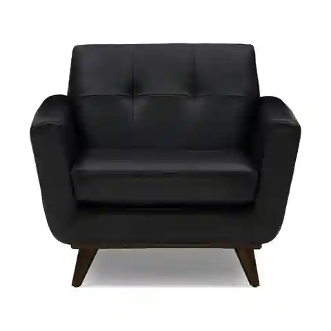 Hughes Leather Chair Santiago Steel Black Mid-Century Modern