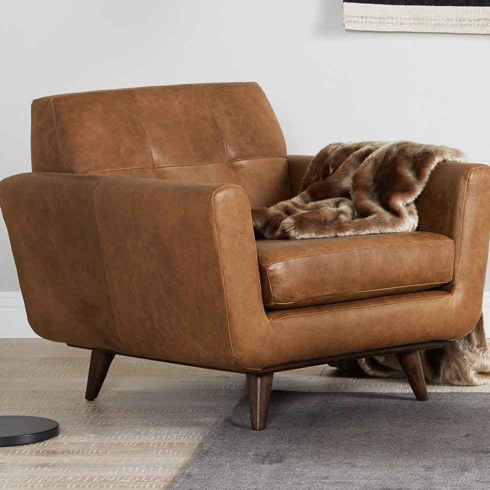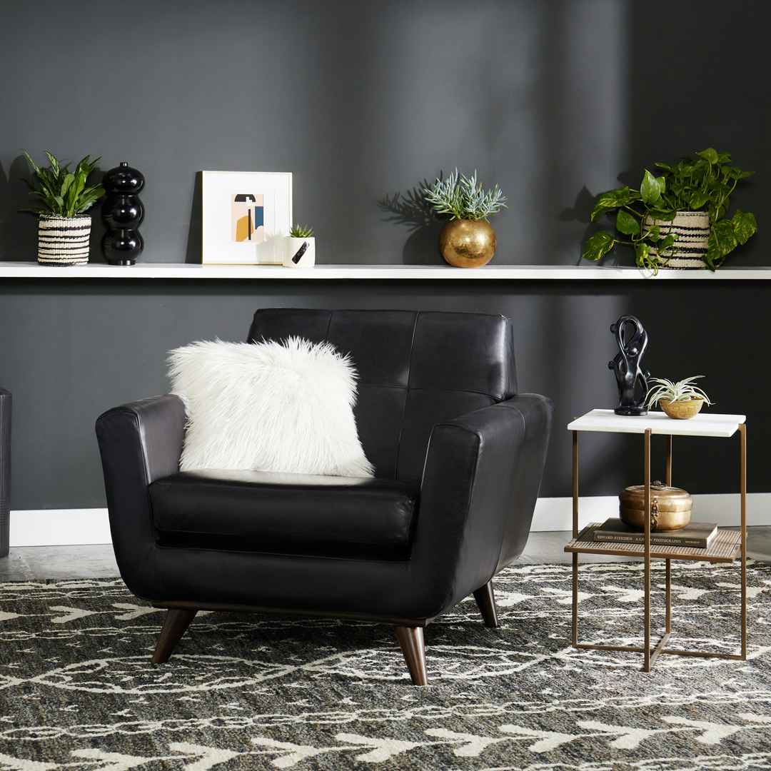 Add some Mid-Century Modern flair to your office or lounge with the Hughes Leather Chaira vintage inspired seat for every meeting, strategy session, or nightcap. Hughes Leather Chair Santiago Steel Black Mid-Century Modern