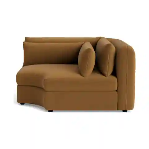 Soft, pillowy cushioning combines with modern style in the Sebastian Modular Corner Wedge, providing a curved cornerstone to your modular setup. Sebastian Corner Wedge Banks Nutmeg Yellow Modern