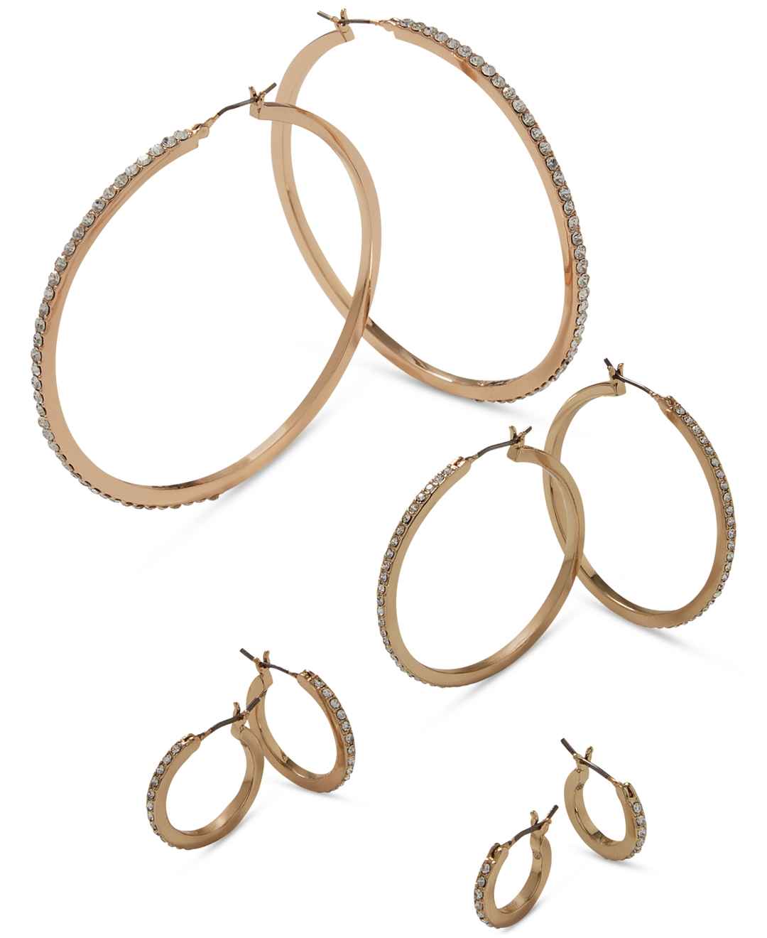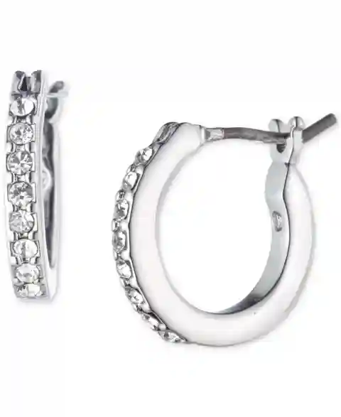 A lot of sparkle packed into an extra-small package. These hoop earrings from Karl Lagerfeld Paris are lined with light-catching pave crystals.