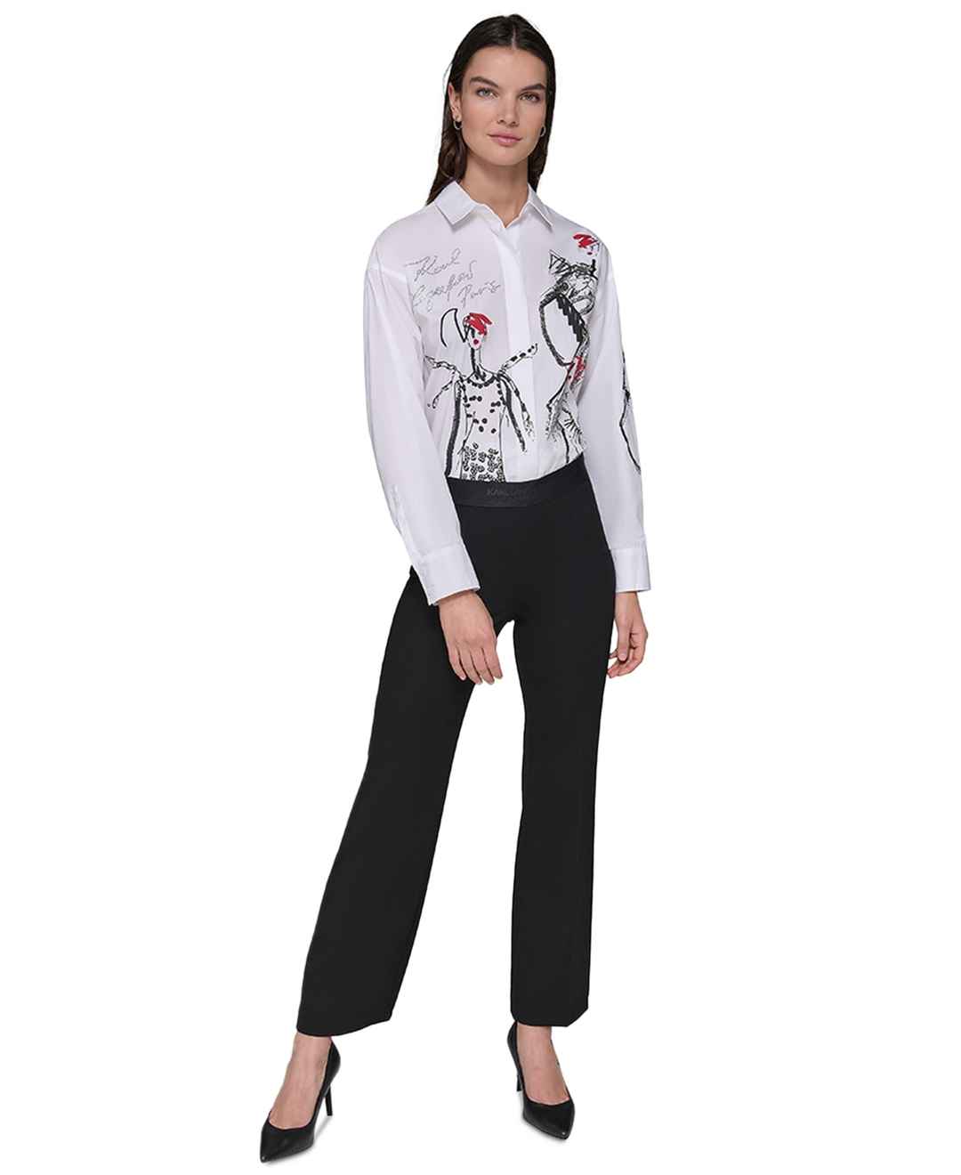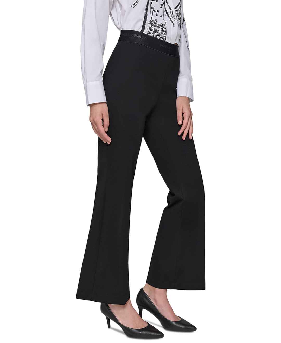 A versatile look you'll turn to often, these Karl Lagerfeld Paris pull-on pants feature a signature waistband and flared boot-cut legs.