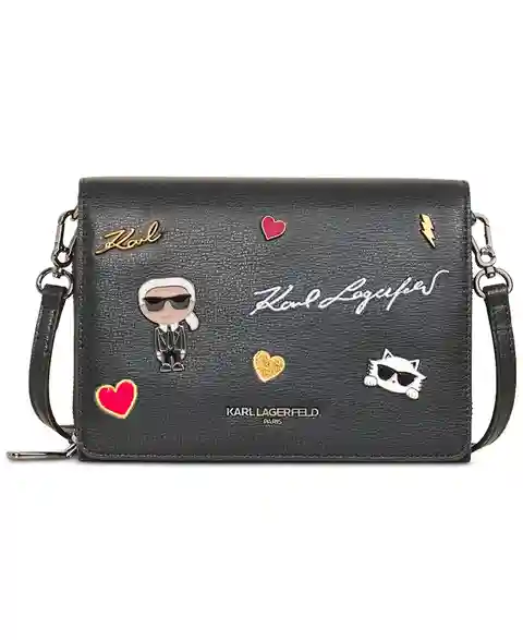 Compact in size, big on character, this accessory by Karl Lagerfeld Paris features a capable interior with iconic k-pins on the exterior for a playful finish.