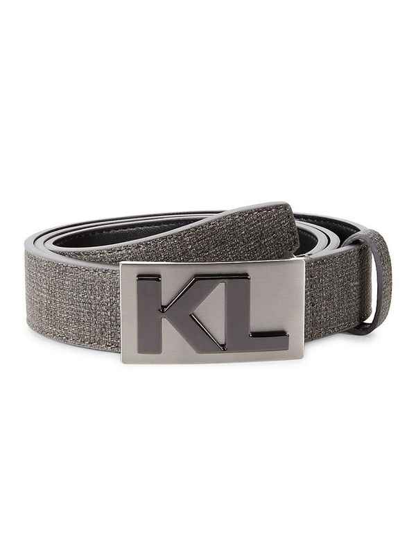 Lined with leather, this stylish belt has a gunmetal-tone logo buckle. Gunmetal-tone hardware Leather Lined Textile Imported SIZE Width, about 1.25. Men's - M Accessories > Saks Off 5th > Barneys Warehouse. Karl Lagerfeld Paris. Color: Grey. Size: 30. Size:30
