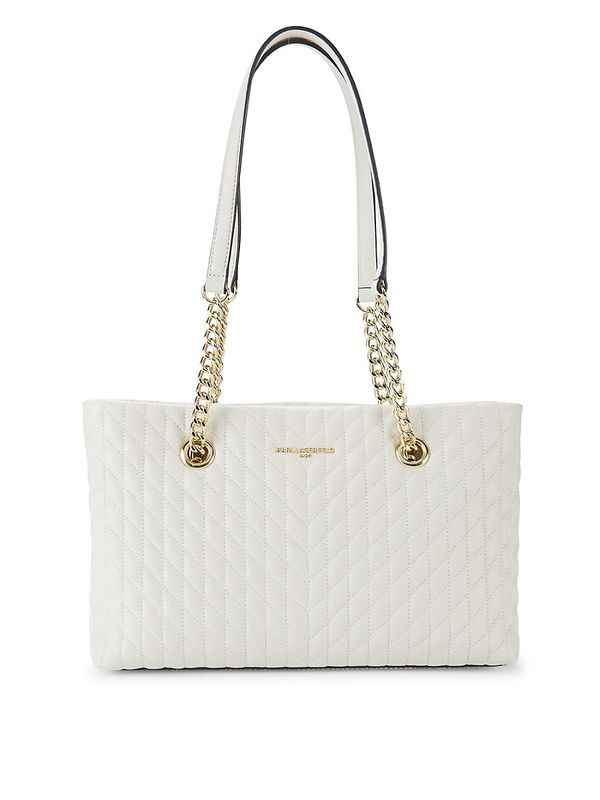 Chic leather tote with a quilted design. Top zip closure Leather trim Goldtone hardware One inside zip pocket Two inside slip pockets Logo at front Lined Leather Imported SIZE Leather and chain shoulder straps, 11 drop 13W x 8H x 4D. Center Core - Handbags/slgs > Saks Off 5th > Barneys Warehou...more