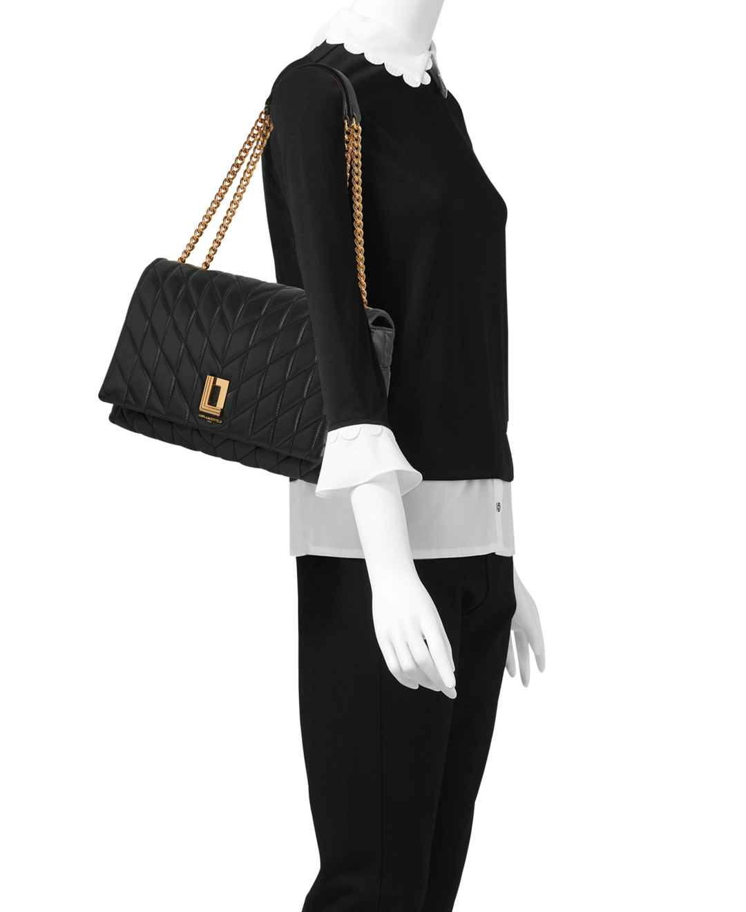Karl Lagerfeld Paris Lafayette Large Shoulder Bag - Black/Gold