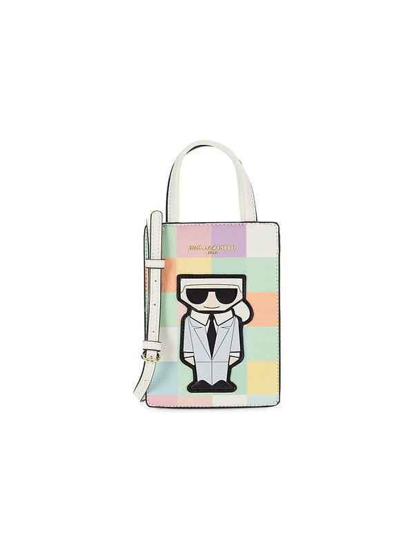 Top snap closure Goldtone hardware One outside slip pocket One inside slip pocket Textile lining Leather Imported SIZE Double top handles, 3 drop Adjustable crossbody strap, 18-24 drop 5.25W x 7H x 2.25D. Center Core - Small Leather Goods > Saks Off 5th > Barneys Warehouse. Karl Lagerfeld Pari...more