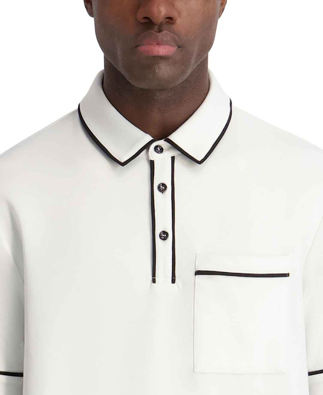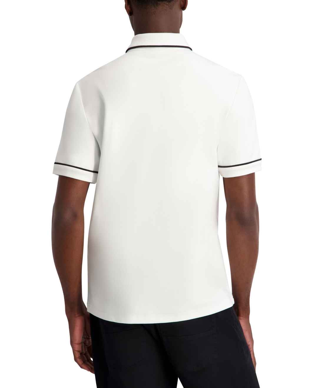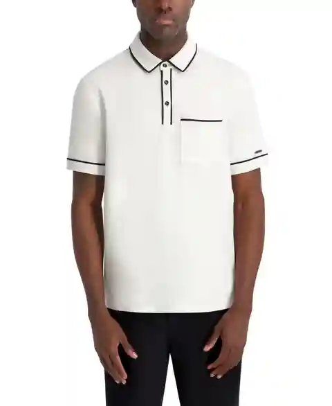 Refined style meets modern edge in this Karl Lagerfeld Paris polo shirt, crafted from heavyweight interlock fabric for a structured, smooth feel that stays polished all day. Contrast piping defines the silhouette, elevating the classic design with a contemporary finish.