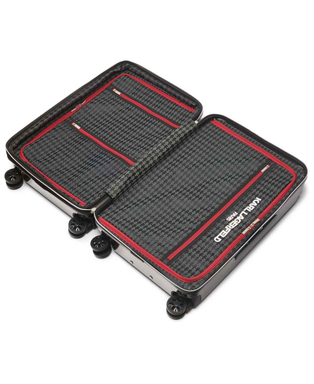 Karl Lagerfeld Paris gives you fashion and function in Flowers collection. Spinner wheels glide you to your destination, while the expansion feature makes additional room for all your souvenirs. This upright also comes with a push button trolley system and a fully lined interior.