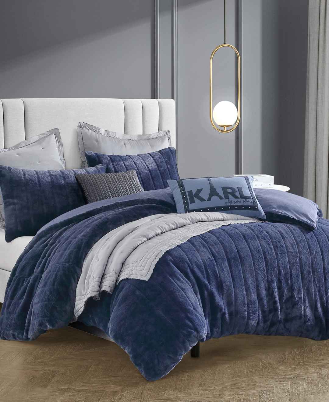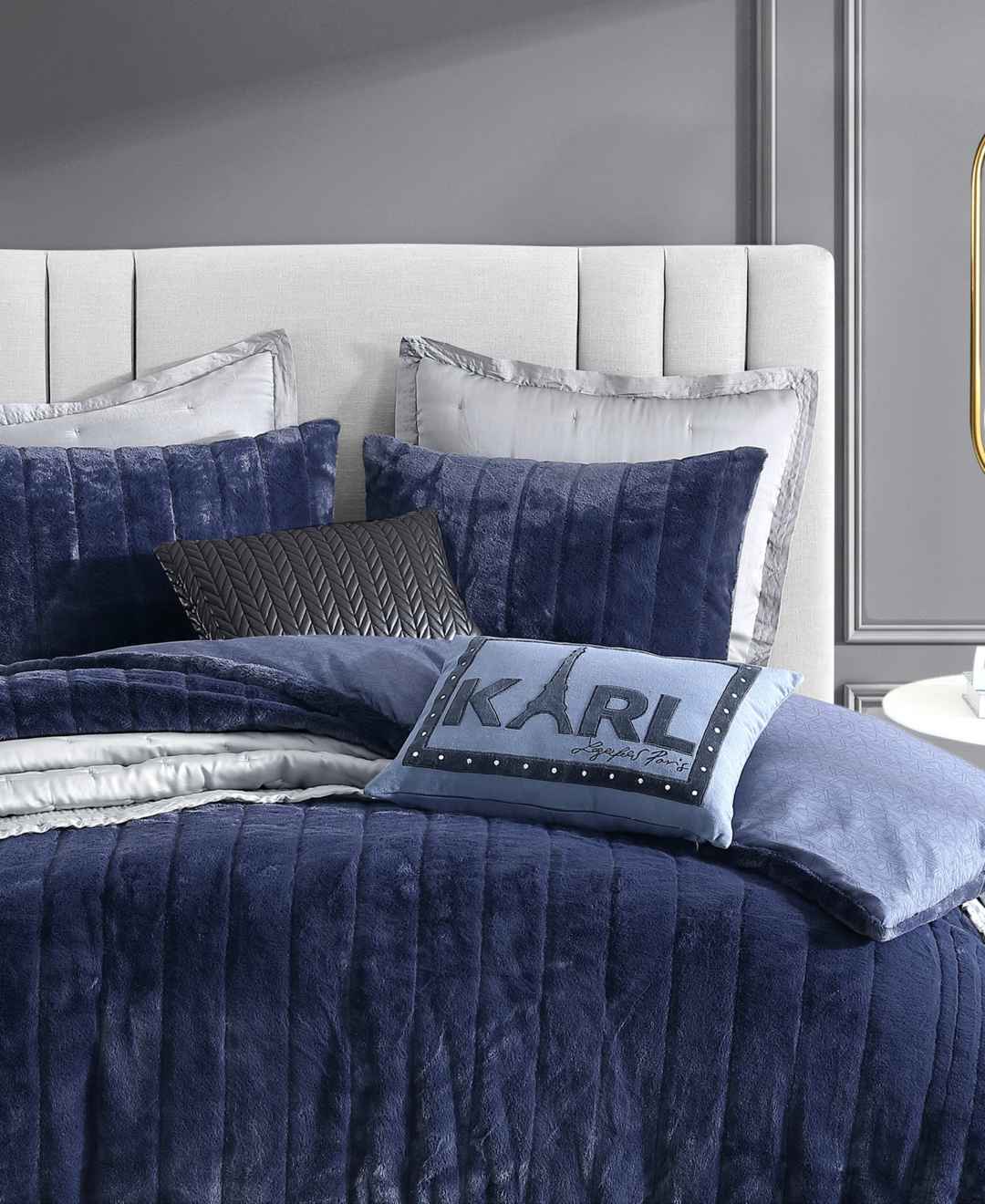 Elevate your bedroom by making your bed the center of attention with the Karl Lagerfeld Paris channel faux fur duvet set. The luxe faux fur will spoil you with its soft feel as the deep indigo shade lends a Parisian chic look.