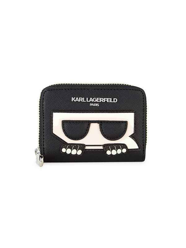 This faux leather card wallet features the signature head and silvertone logo hardware on the front. Zip-around closure Silvertone hardware One inside zip pocket 11 inside credit card slots Lined Polyurethane Imported SIZE 4W x 3H x 0.75D Please note: Dust bag not included. Center Core - Small Leath...more