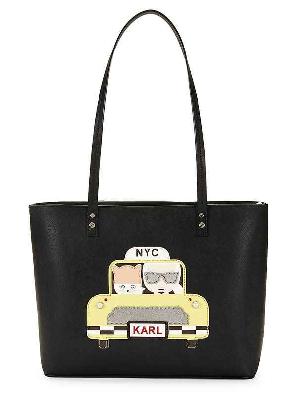 Spacious tote bag with a signature taxi motif embroidery. Magnetic flap tab Interior zip pocket Two interior slip pockets Leather Textile lining Imported SIZE Double top straps, 18.5 drop 9.5 x 3 x 7.5. Center Core - Handbags/slgs > Saks Off 5th > Barneys Warehouse. Karl Lagerfeld Paris. Color...more