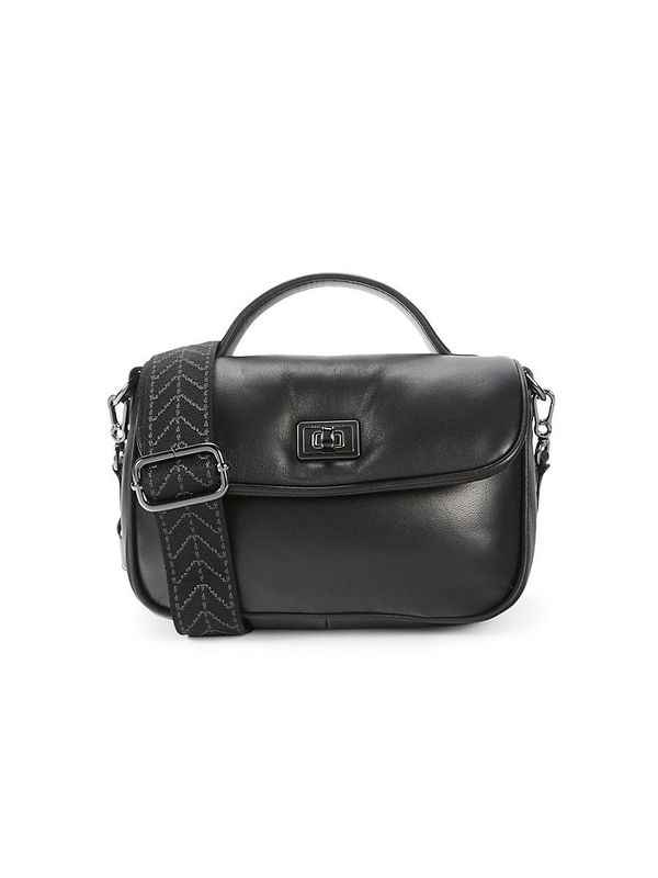 This compact crossbody bag is crafted from fine leather. Adjustable crossbody strap Top handle Foldover clasp closure Black hardware One inside pocket Lined Leather Imported SIZE 8W x 6.5H x 2.5D. Center Core - Handbags/slgs > Saks Off 5th > Barneys Warehouse. Karl Lagerfeld Paris. Color: Blac...more