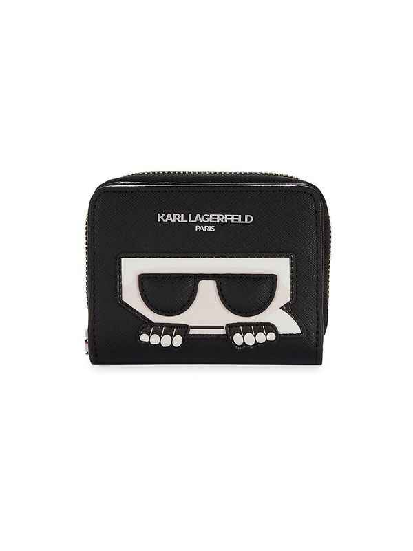 Chic faux leather zip-around wallet with logo detail on the front. Zip-around closure Polyurethane trim Silvertone hardware One outside back zip pocket One inside bill compartment Six inside card slots Lined Polyurethane Imported SIZE 4.25W x 3.25H x 1D Please note: Dust bag not included. Center Cor...more