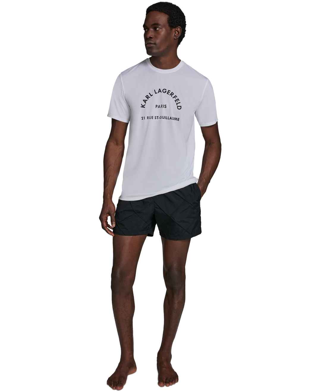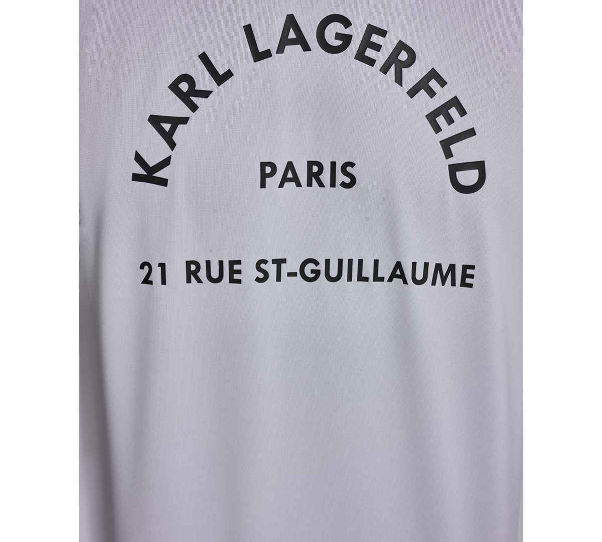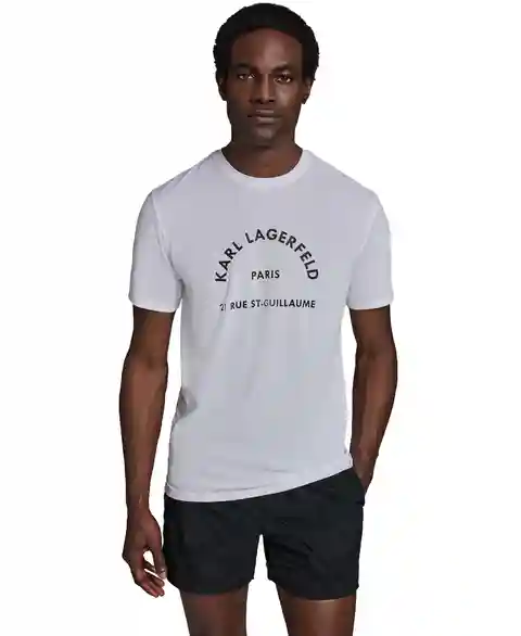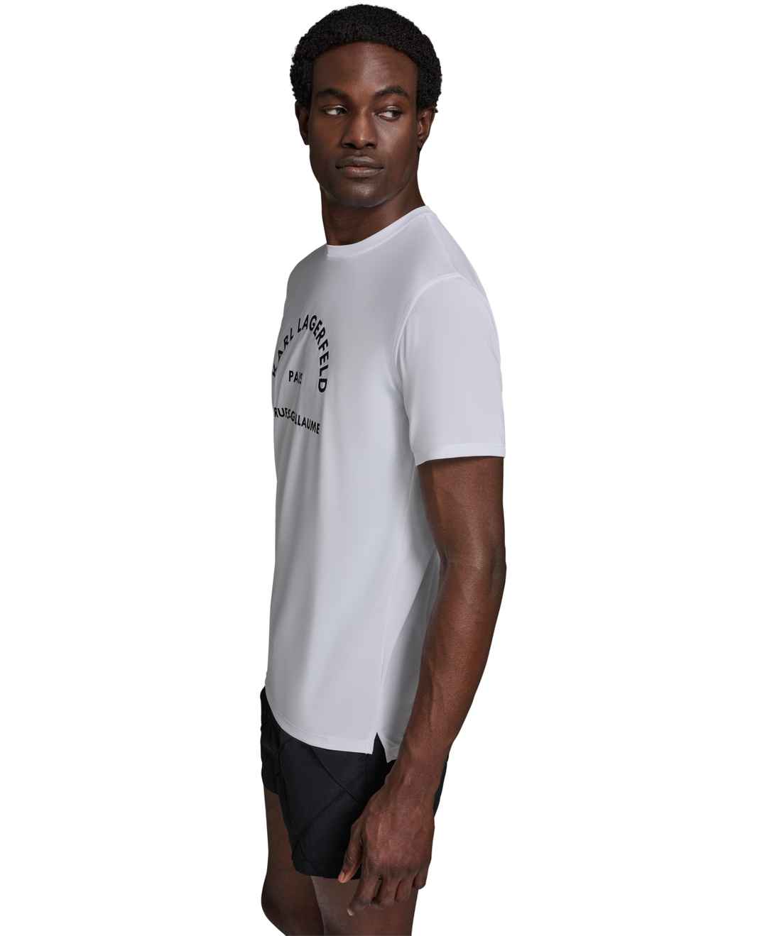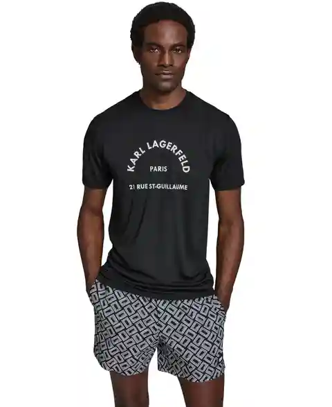 Sporty and sleek, this Karl Lagerfeld Paris rashguard features short sleeves, a self-collar band, and split side hems for a comfortable fit. An arched Karl Lagerfeld Paris logo across the chest and Upf 30+ protection complete the design.