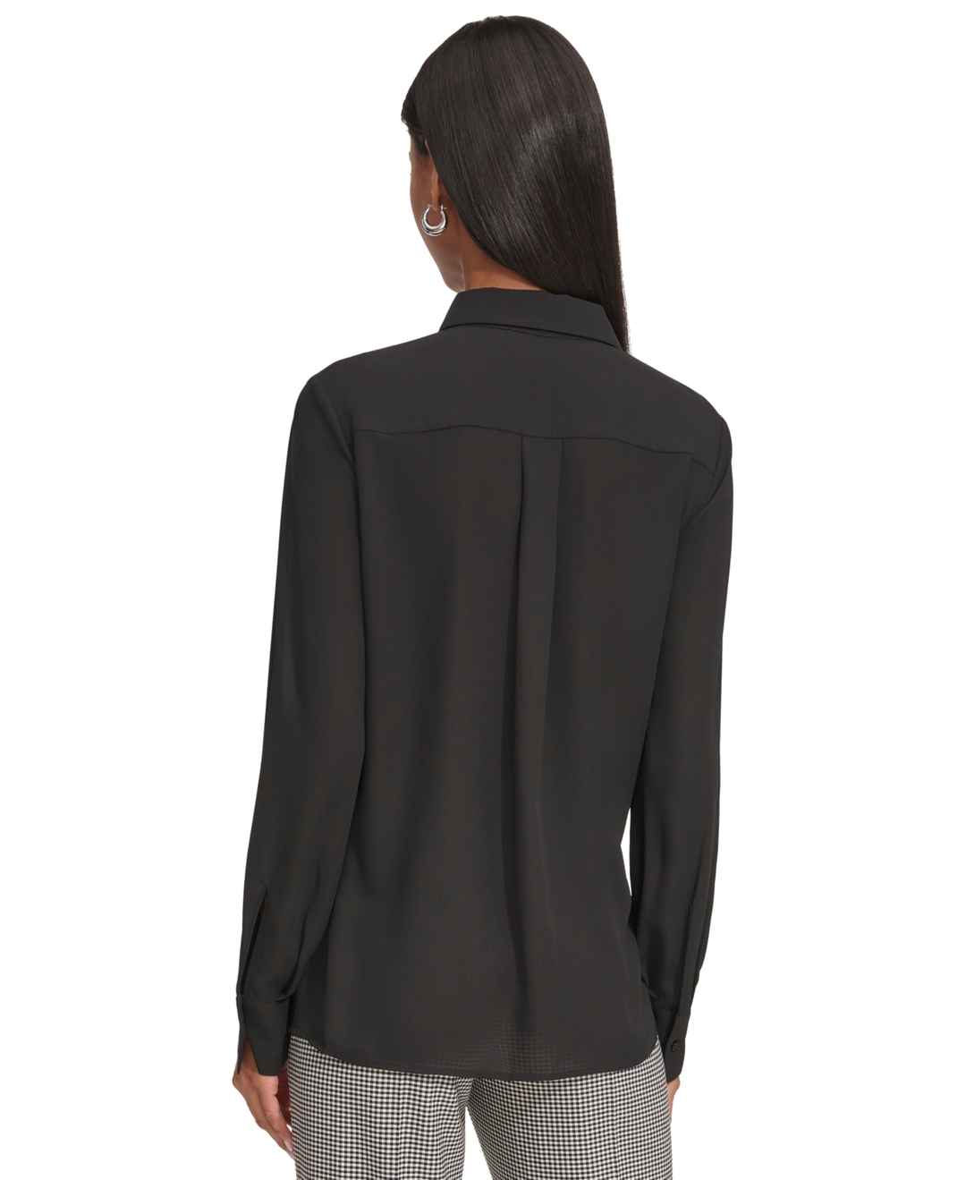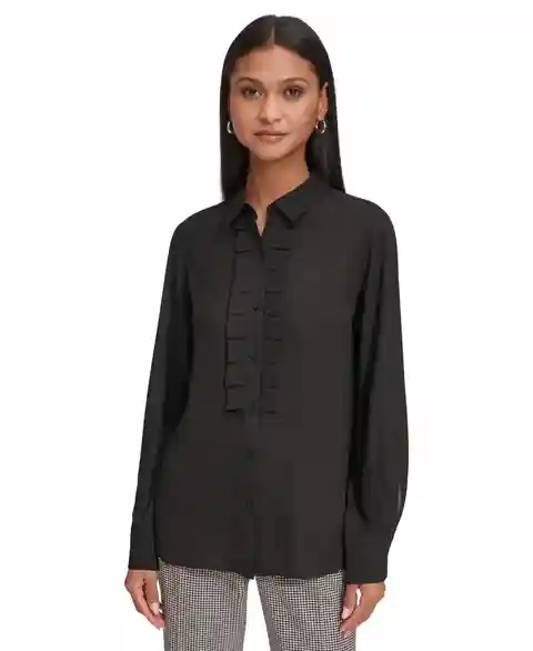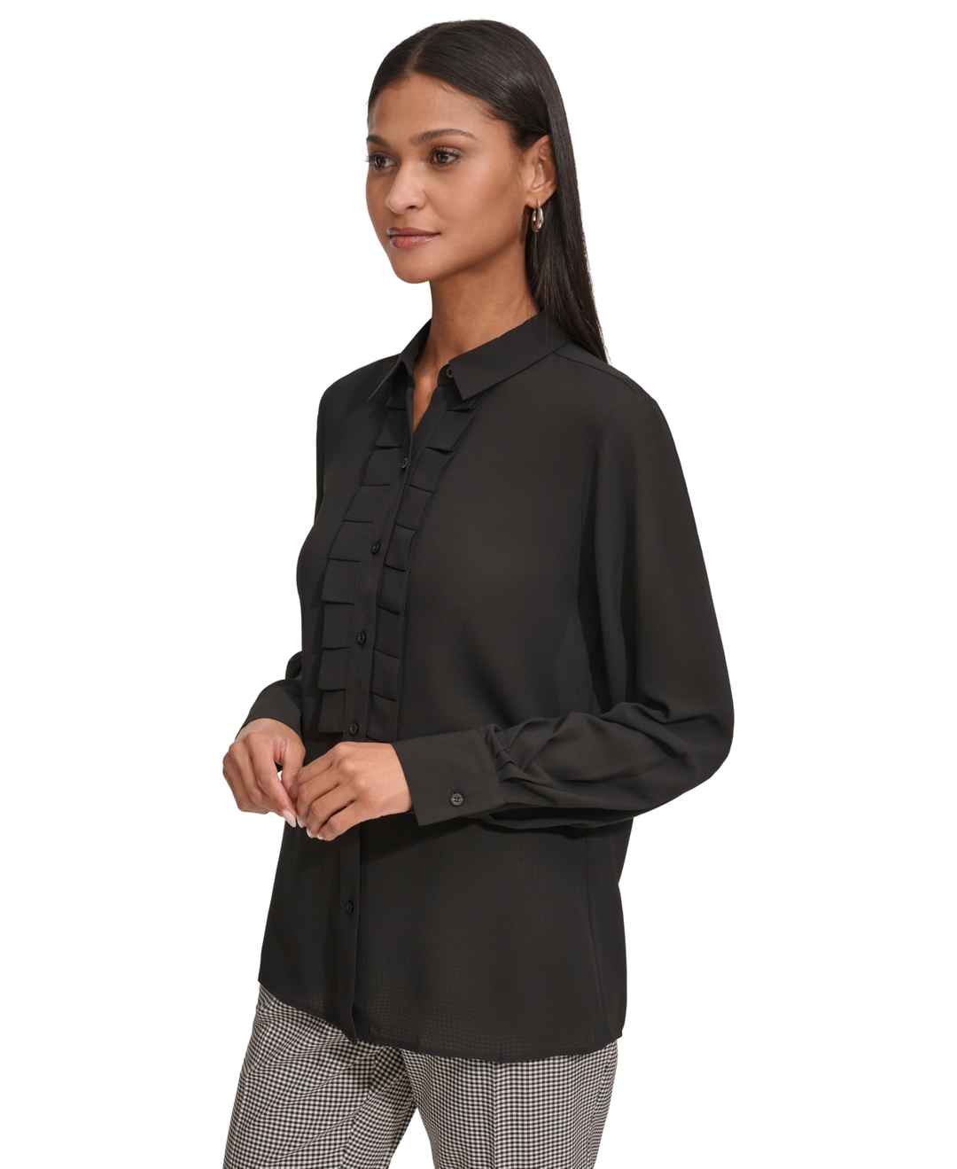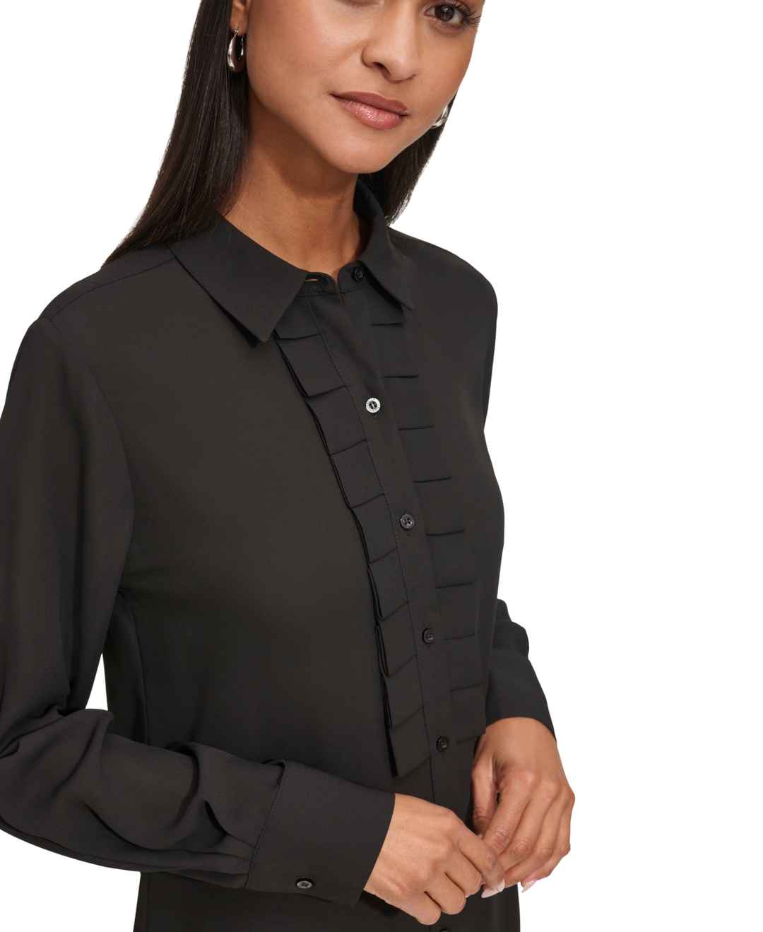 A ruffled front lends a chic finish to this long-sleeve blouse from Karl Lagerfeld Paris.